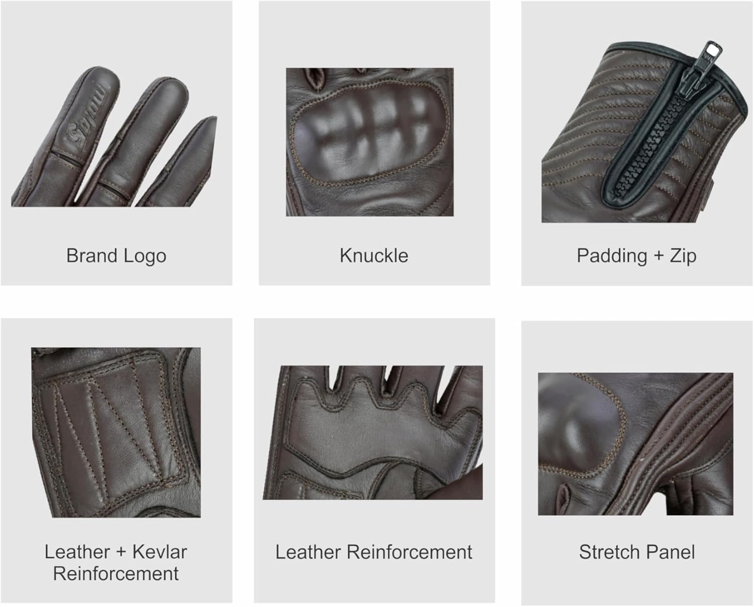 - KNUCKLE AND FINGER JOINTS PROTECTION: With PVC metacarpal-knuckle and finger joint protective shells, our summer leather motorcycle gloves offer unparalleled protection underneath the leather, ensuring safety without compromising style.