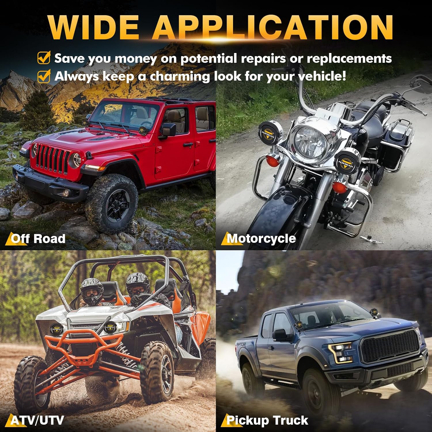 - 【Better Light Protection】Round light cover provides an additional layer of protection, preventing the offroad lights from being damaged by collisions, bumps, and other factors during driving, thus extending the lifespan of the lights.
