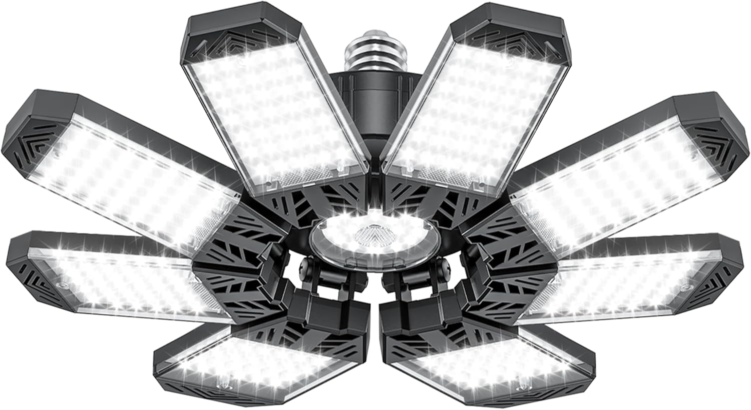 - Versatile Applications: ISKYDRAW deformable garage lights with 8 panels offer satisfied performance with bright lighting, durability and easy installation. The adjustable garage light is suitable for indoor spaces and commercial applications that require bright and flexible lighting, such as workshop, basement, barn, warehouses, store.