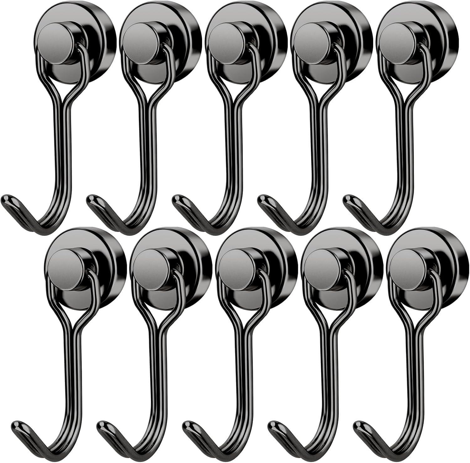 FINDMAG Magnetic Hooks, 30lbs+ Strong Magnetic Hooks Heavy Duty 2025 Criuse Ship Essentials, Black Refrigerator Magnet Hooks for Hanging, Office, Grill, Kitchen, Beach Vacation - 10 Pack