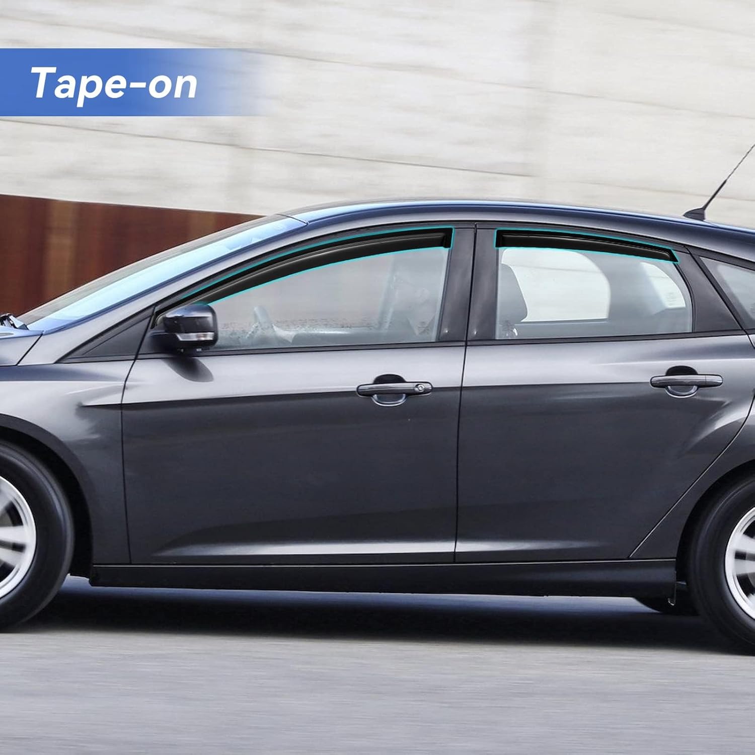 - ăPerfect FităYQAUTEC Out-Channel/Outside Adhensive Window Visors Rain Guards Shield fit for 2012 2013 2014 2015 2016 2017 2018 12 13 14 15 16 17 18 Ford Focus Sedan, Side Window Vent Wind Deflectors Visors Shades. (Not for Focus RS & ST)