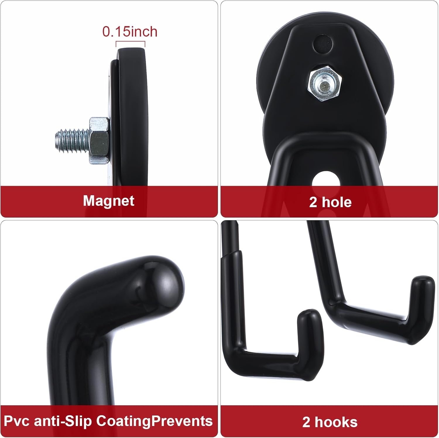 Landhoow Large Magnetic Hooks Heavy Duty Garage Magnet Hooks Strong Storage Utility Magnetic Hangers with Anti Slip Rubber Coating for Indoor and Outdoor Hanging(Black,6 Pcs)