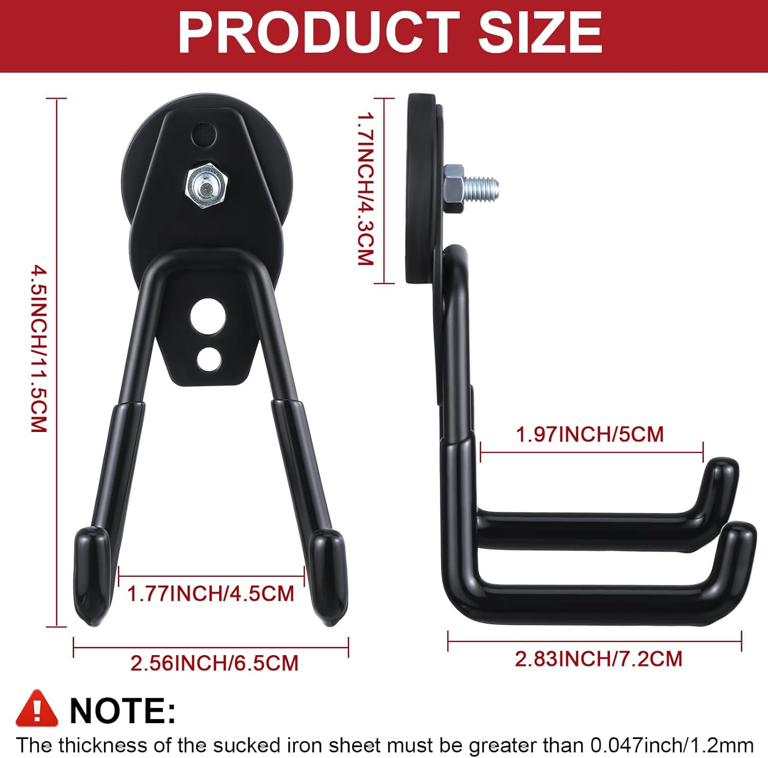 - Easy to Install: no need to use any tools, and the magnetic hooks will not break the surface; The black magnetic hooks can be placed directly on the metal surface; Please note that the thickness of the sucked iron sheet must be thicker than 0.047 inch/ 1.2 mm; Or else the magnetic hook will slide off