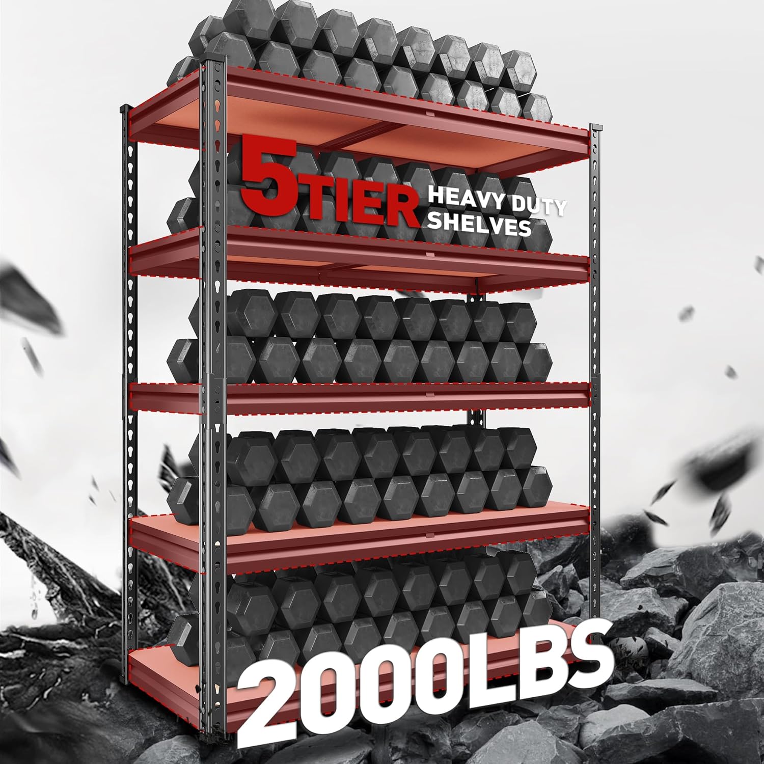 - ă2000LBS Capacity Garage Storage Shelves Heavy DutyăThe heavy duty shelving has thickened steel legs. Made of high-quality metal frame+high-quality thicker boards,so each shelf can hold up to 400 lbs, with a total bearing capacity of 2000 lbs, which makes 5 tier garage shelving unit more stable, solid and more stuff can be stored