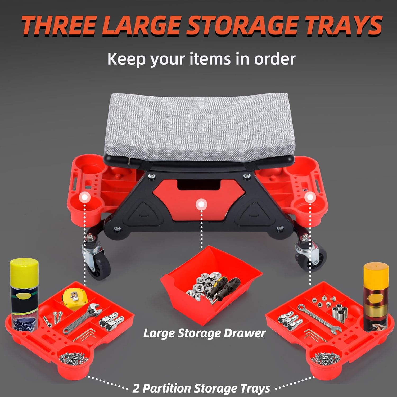 - Ergonomic Stool: Our mechanic roller seat is built to help you work in comfort. The rolling stool features a generous seating area and has a non-slip surface. With a 330 lb loading capacity, everyone is welcome to sit down on the jobs, whether you're a mechanic or do auto detailing.