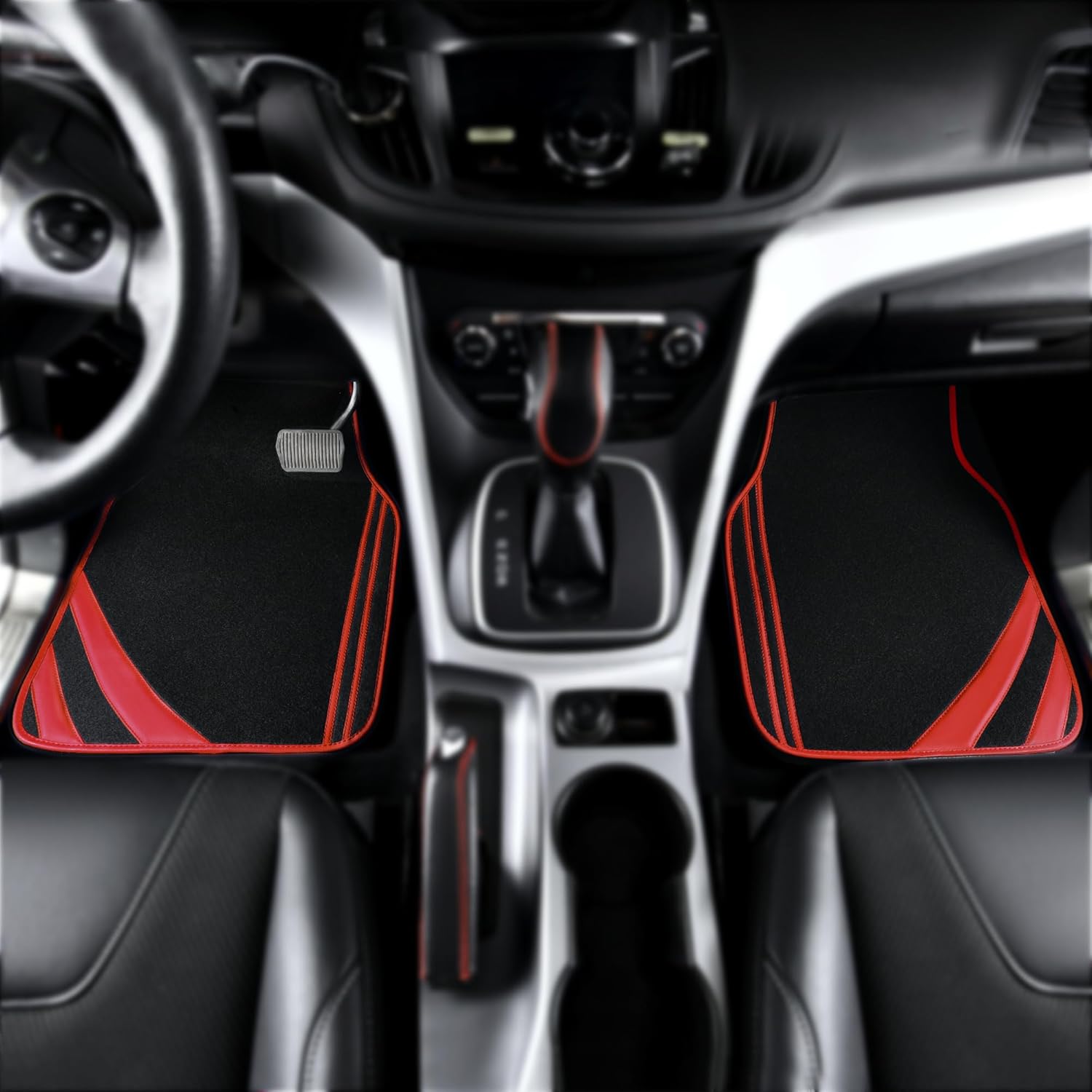 CAR PASS Red Edge Leather Car Floor Mats, Universal Waterproof Car Mats with Double Stitch Line and Anti-Slip Backing Design, for Cute Girly Women, Fit 95% Automotive,SUVs,Sedan,Vans (Black and Red)