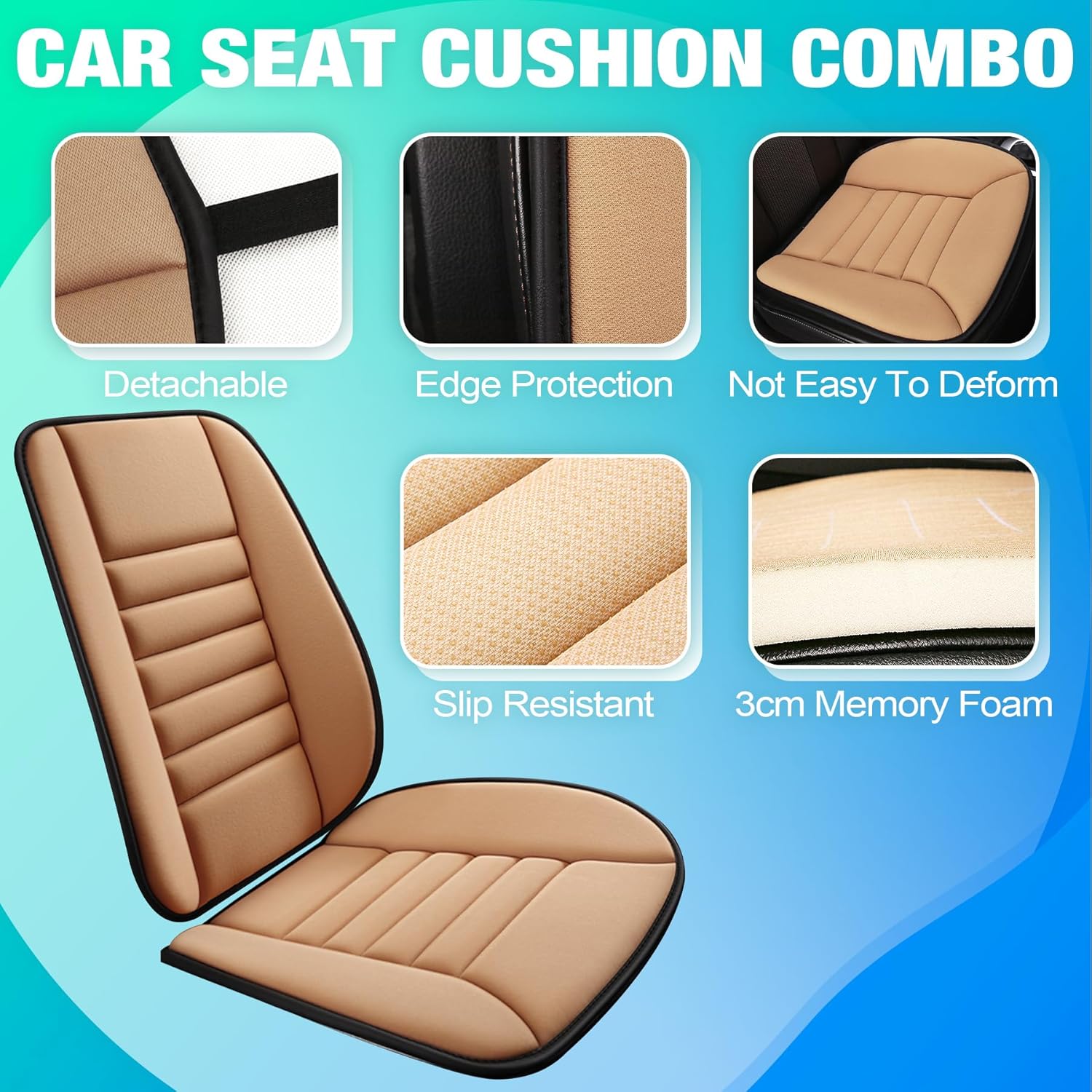 - 【Seating Comfort】Car seat cushion combo provides more support and keeps your spine properly aligned. Lumbar support is firm and elastic, giving you with softer comfort. Help to relieve pain of lower back, lumbar, tailbone and cciatic nerve. Relieve the pressure from neck and shoulder. Alleviate the fatigue caused by prolonged sitting.