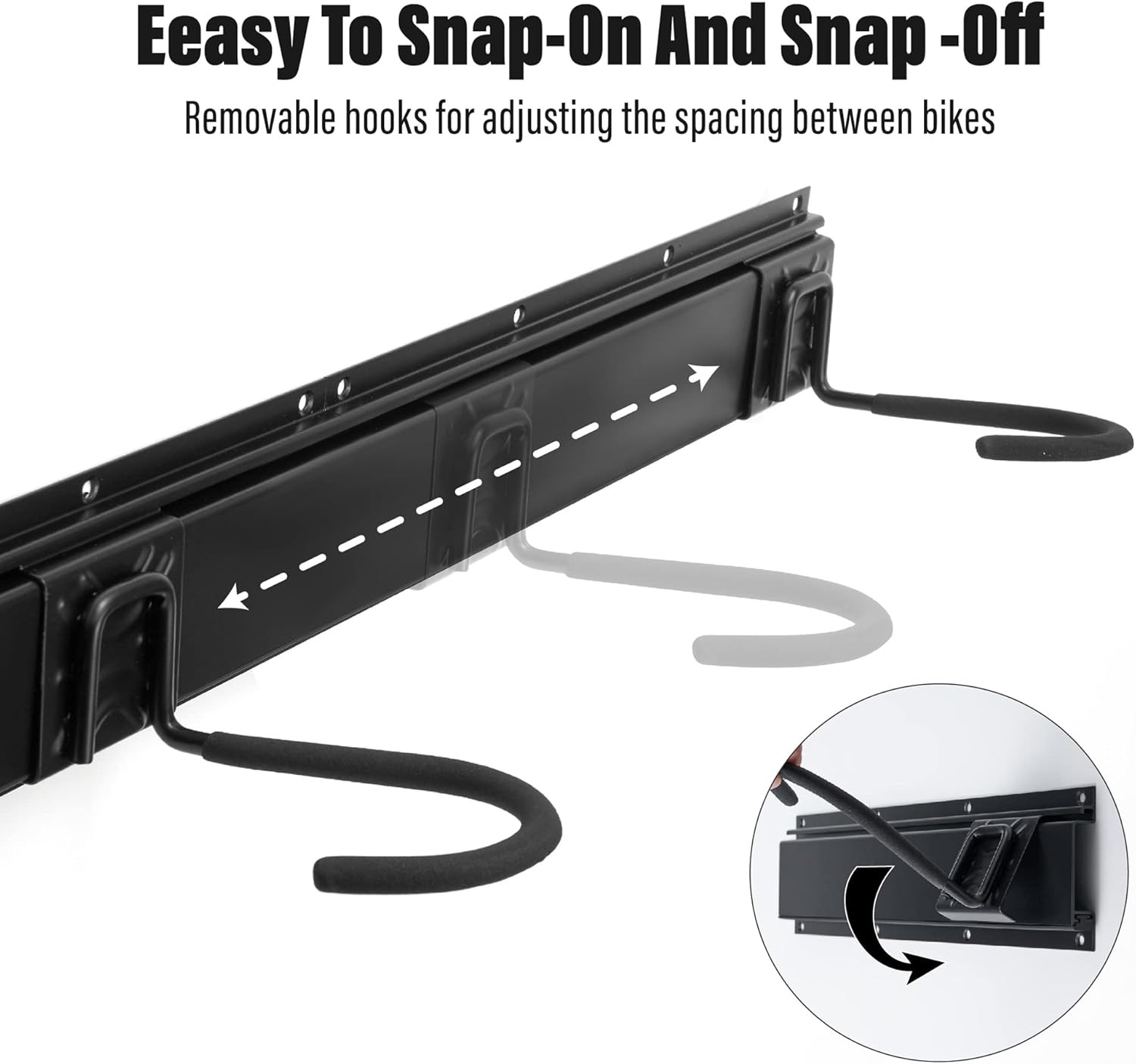 - Advanced options. Usually 32 inch guide rails are suitable for four bicycles and two helmets and 48 inch guide rails for six bicycles and three helmets. This product offers 64 inch guide rails for six bikes and six helmets. There is more space, more convenient and convenient to get in and out. Comfort and convenience are the most important thing, right?