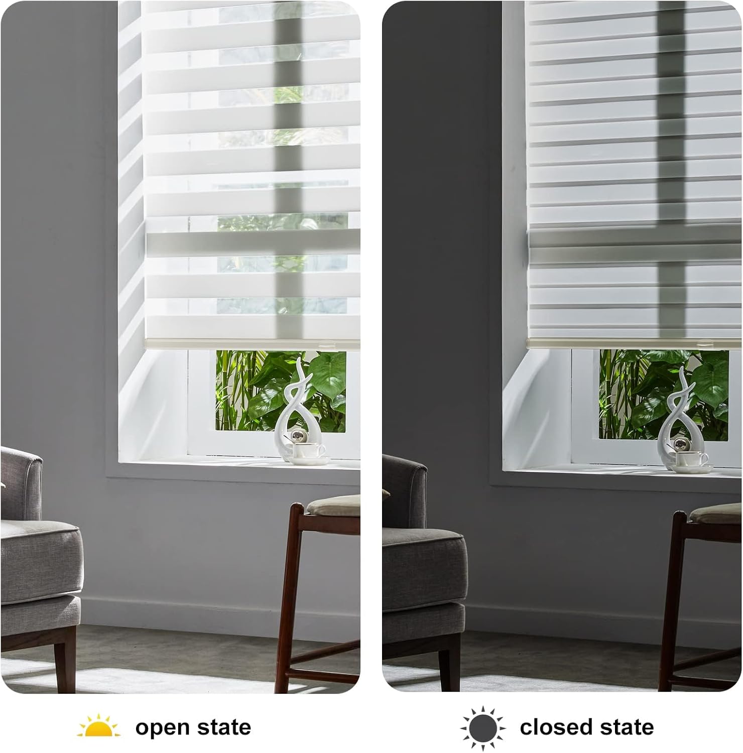 Persilux Zebra Blinds Cordless, Zebra Roller Shades for Windows (34.5" W x 64" H, Cream) Light Filtering Day and Night Window Drapes Sheer Shades for Home, Bedroom and Sliding Door Easy to Install