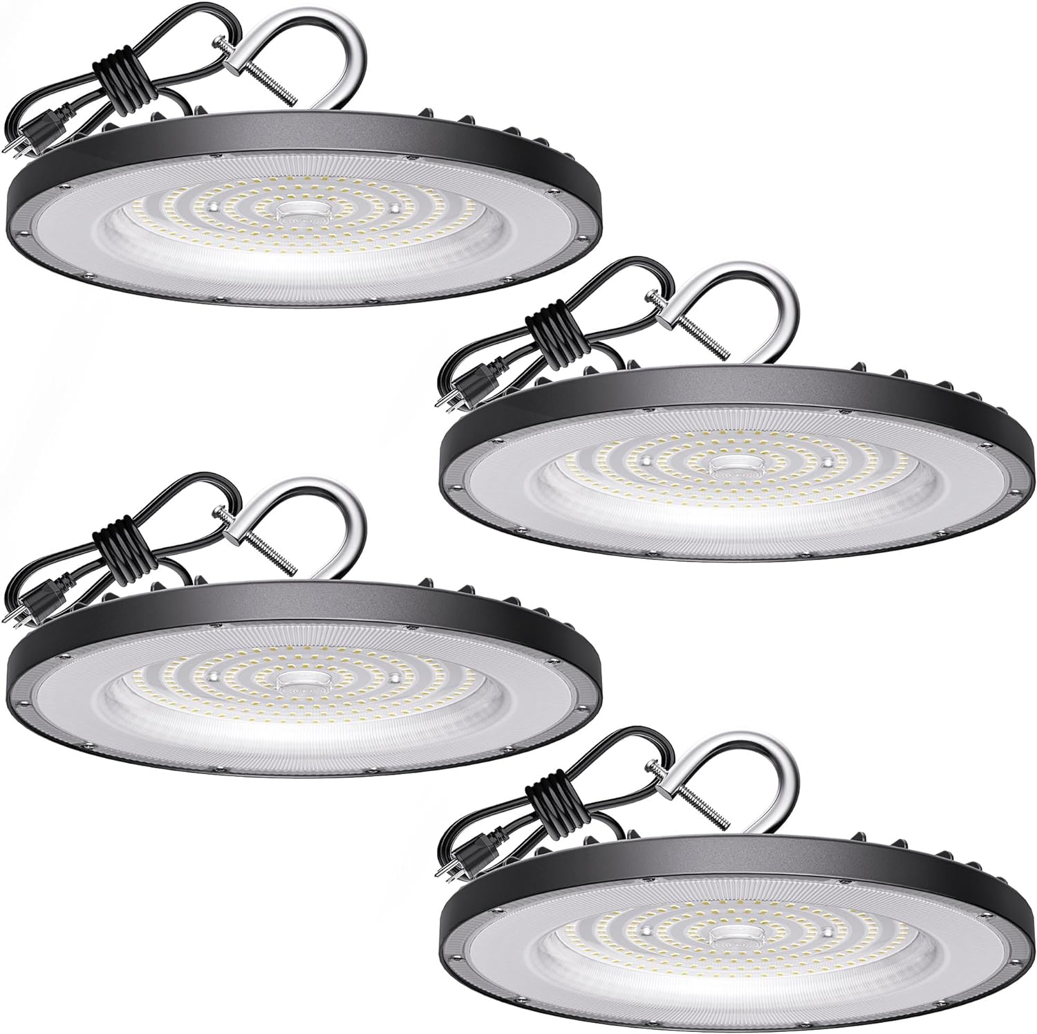 4 Pack UFO LED High Bay Light 150W(600W MH/HPS Equiv.), 21000lm, 5000K Daylight High Bay LED Shop Lights with 5' Cable US Hook, IP65 Commercial Light Fixture for Warehouse Workshop Barn Factory