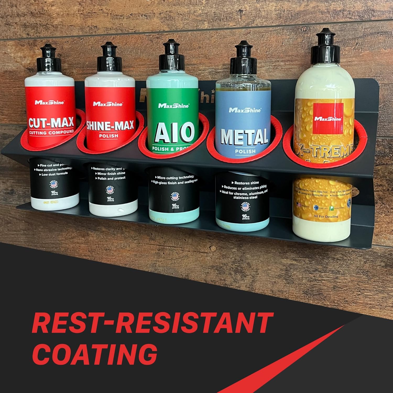 Maxshine Universal Detailing Spray Bottle Holder - Mobile Detailing & Car Garage Organizer, Holds 5 Sprayers (16/32oz) with 4 Small Holes, Lightweight Design, Easy Wall Mounting (Set 1)