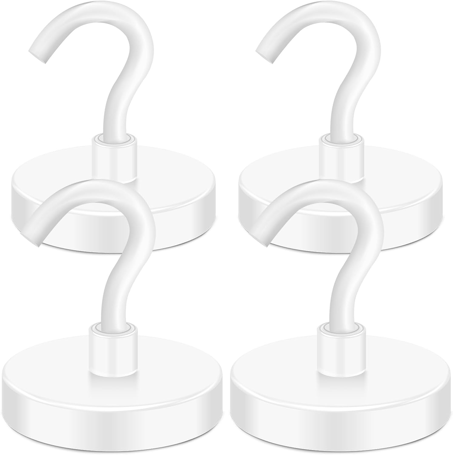 MIKEDE Magnetic Hooks Heavy Duty, 150LB Super Strong Magnetic Hooks for Cruise, Neodymium Earth Magnets with Hook for Hanging, Magnetic Metal Hanger for Fridge, Toolbox, Storage, (White, 4 Pack)