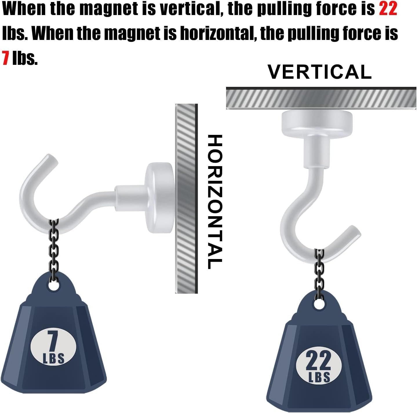 - 【Hanging Capacity】 Silver magnetic utility hooks are great for hanging accessories on the metal surface. They are able to sustain maximum weight up to 30 lbs on vertical hanging and the power reduced by 2/3 on horizontal hanging.