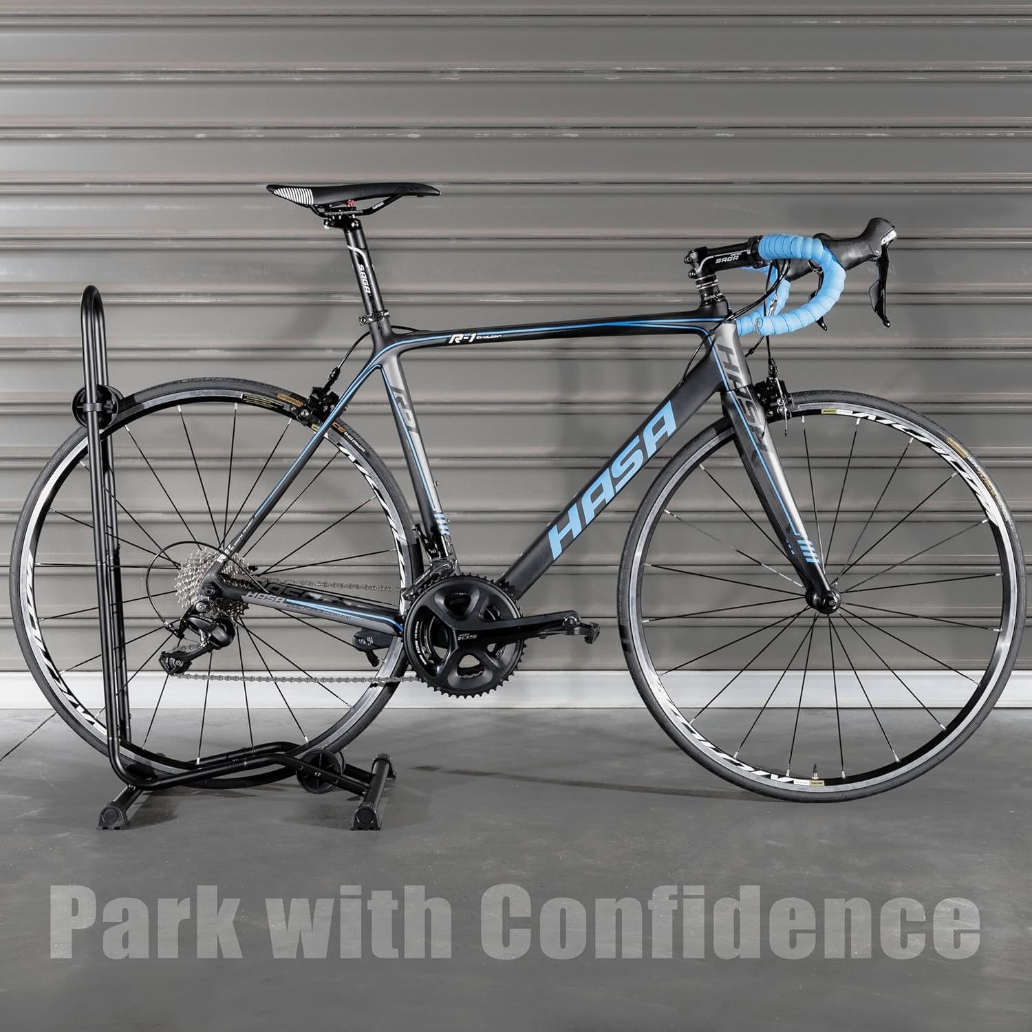 - PREMIUM DURABILITY - Crafted from powder-coated, high-quality solid steel with anti-rust coating, our bike floor stand ensures durability and stability. It resists scuffing, rust, and weather damage, ensuring a long lifespan. The rubber-protected base and precision-machined joints further enhance its stability, making it perfect for indoor use. This bike floor stand weighs 1.96 kg/4.35 lbs, providing a reliable and long-lasting solution to keep your bike safe and accessible.