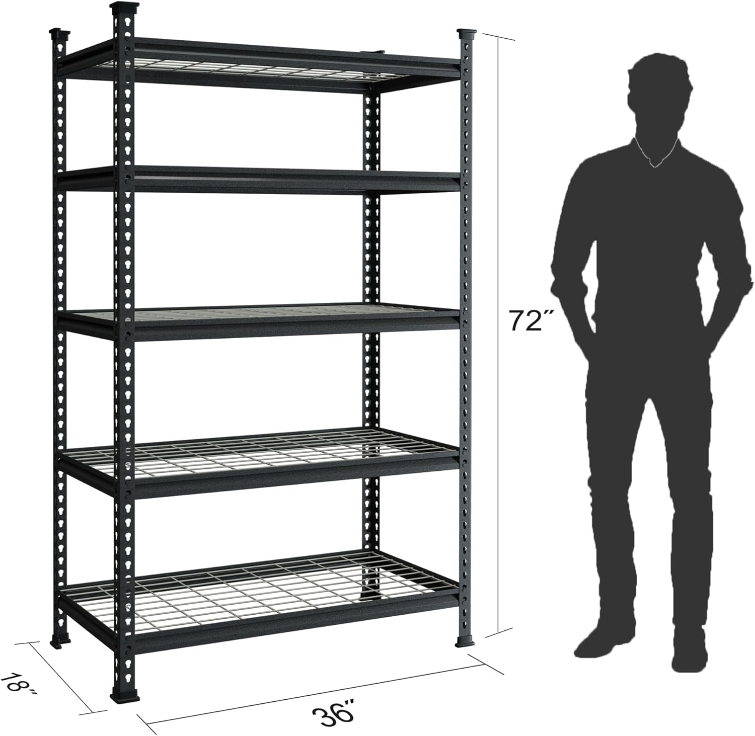 - 【4000 lbs Load Capacity】 Made of a high-quality metal frame, this shelving unit is more steady and tough than average garage shelves. The maximum capacity is up to 4000 lbs total, 800 lbs per shelf, which can store much more stuff and tools in your garage or warehouse.