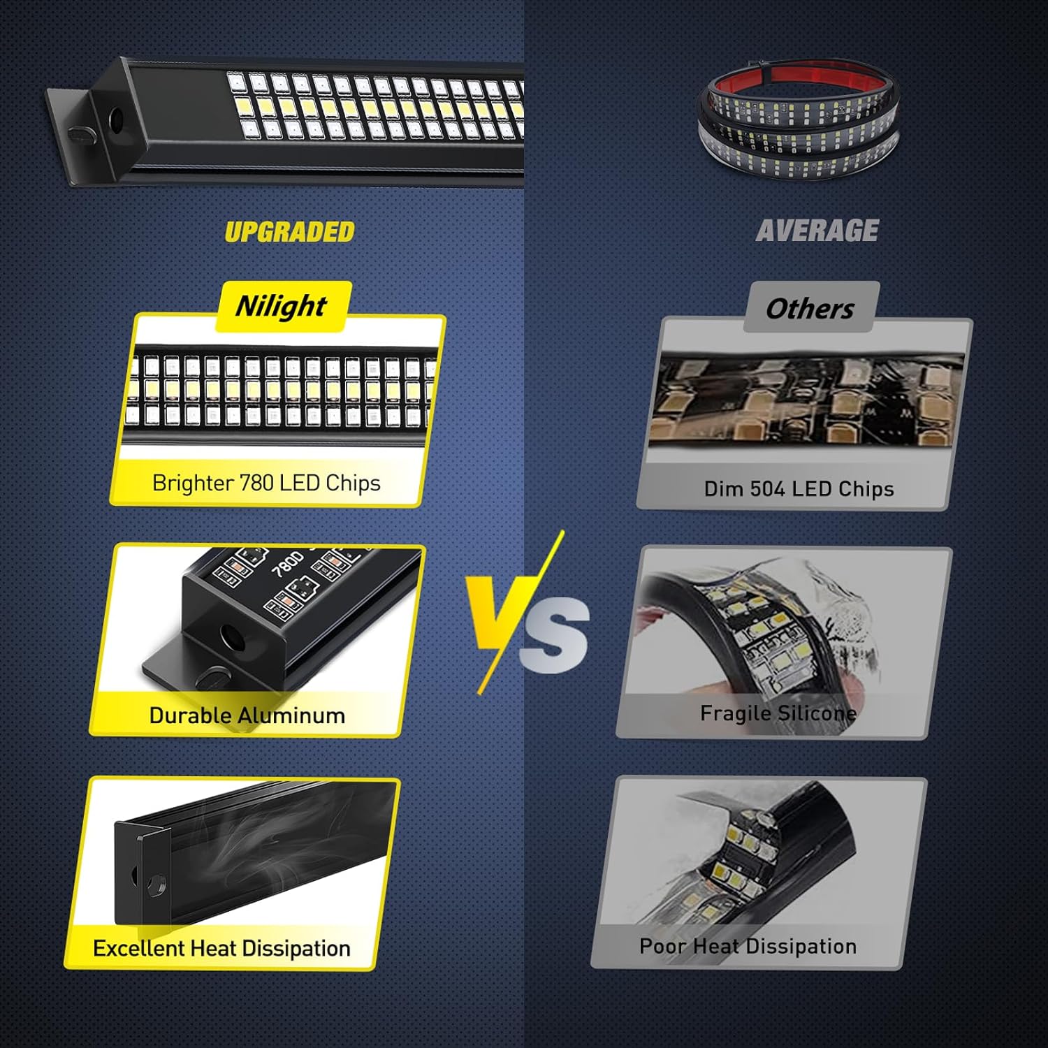 Nilight Truck Tailgate Light Strip 48" Aluminum Frame Triple Row 780 LED Bar with Red Running Brake Sequential Turn Signals Strobe Lighting White Reverse