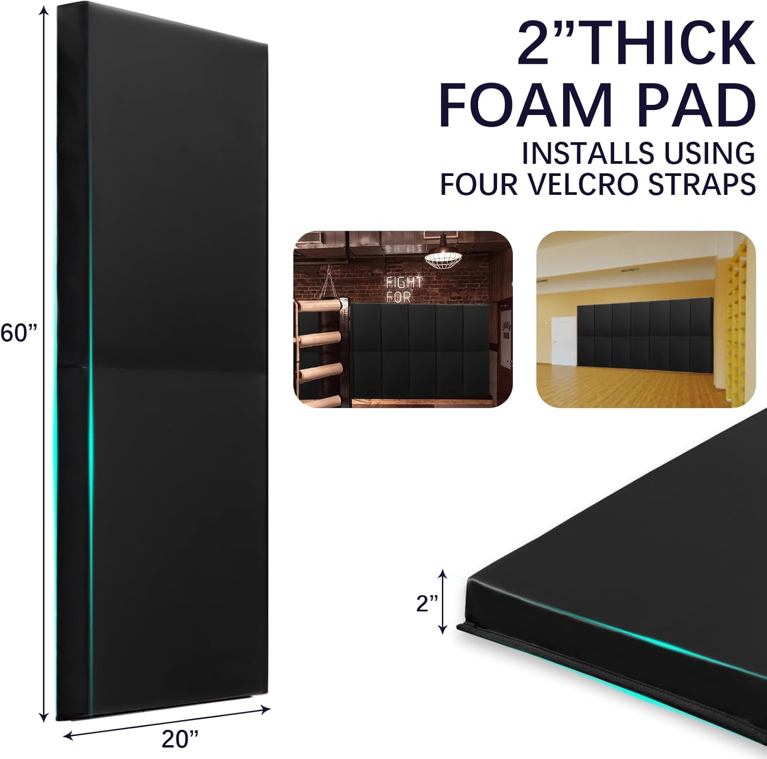 - 💯【Extensive coverage and value】 : Each package includes one smooth black sports protective wall pads, providing a total coverage area of 8.33 square feet. With pad sizes of 60"x 20"x 2" they can accommodate various wall sizes, ensuring comprehensive protection.