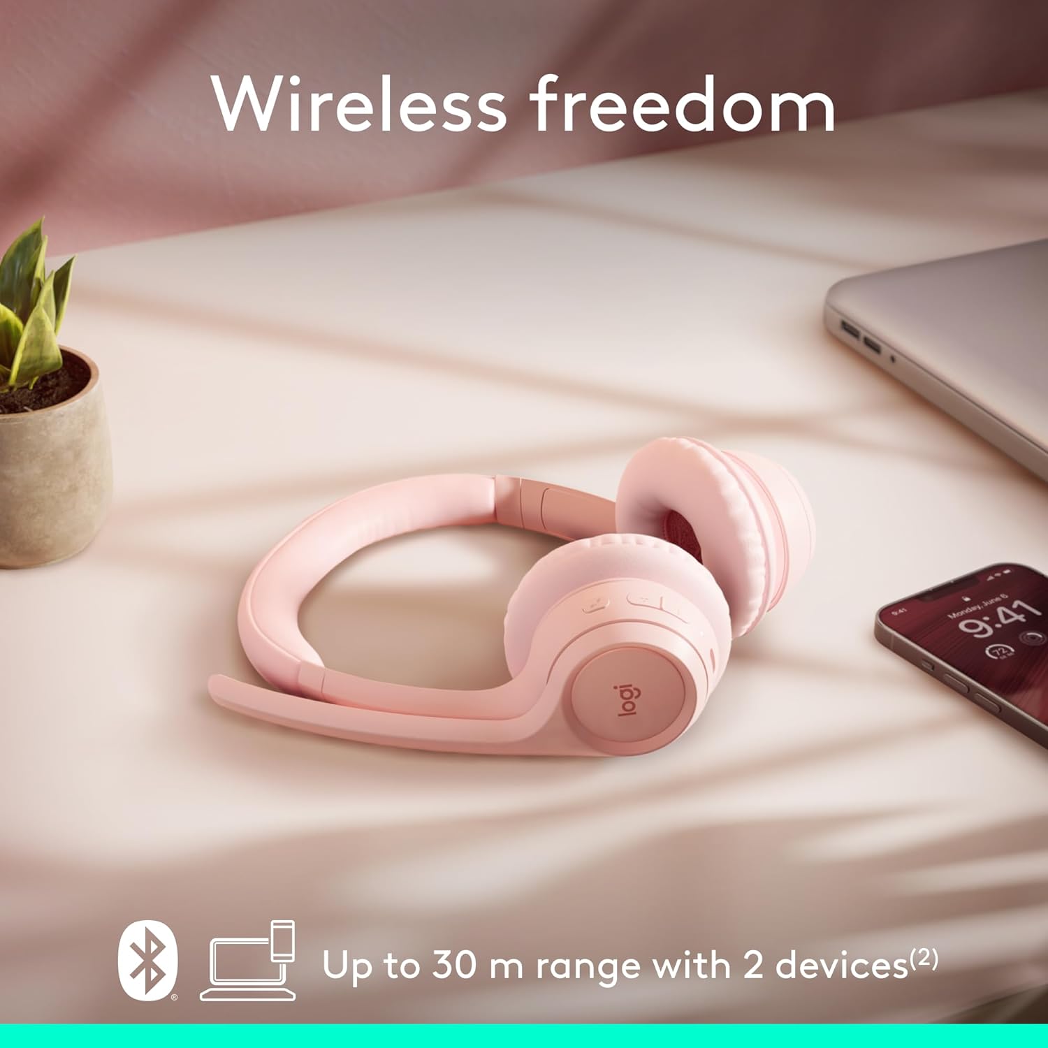 Logitech Zone 300 Wireless Bluetooth Headset with Noise-Canceling Microphone, Compatible with Windows, Mac, Chrome, Linux, iOS, iPadOS, Android – Rose