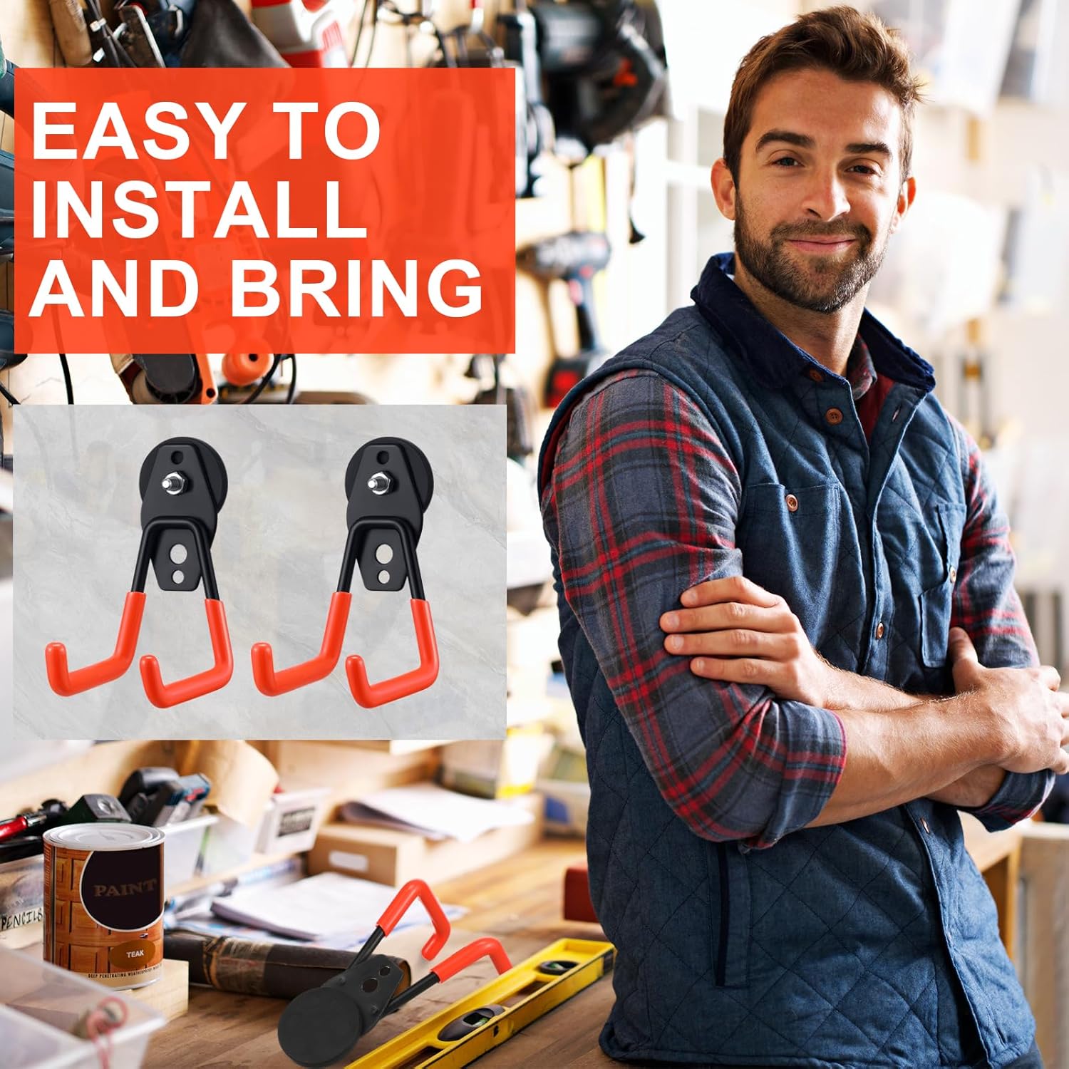 - Wide Range of Usages: compared with the single hook, our garden tool hooks have 2 holes, which can easily support the weight and can hang most items; Applicable to scenes such as kitchens, garages, warehouses, offices, etc. which can accommodate various tools and equipment, such as hoses, skates, gym bags, shovel, rake, broom, mop and other garden tools