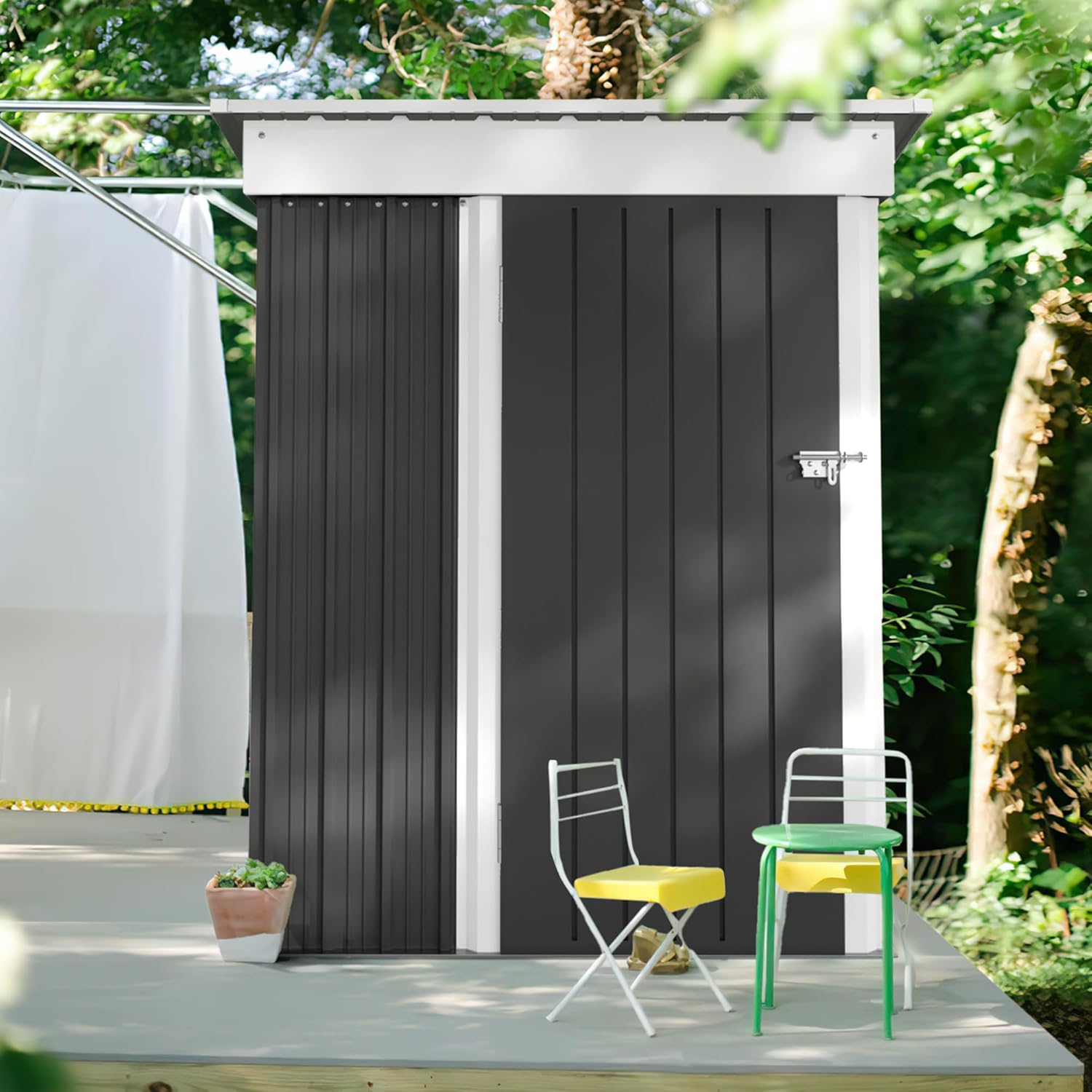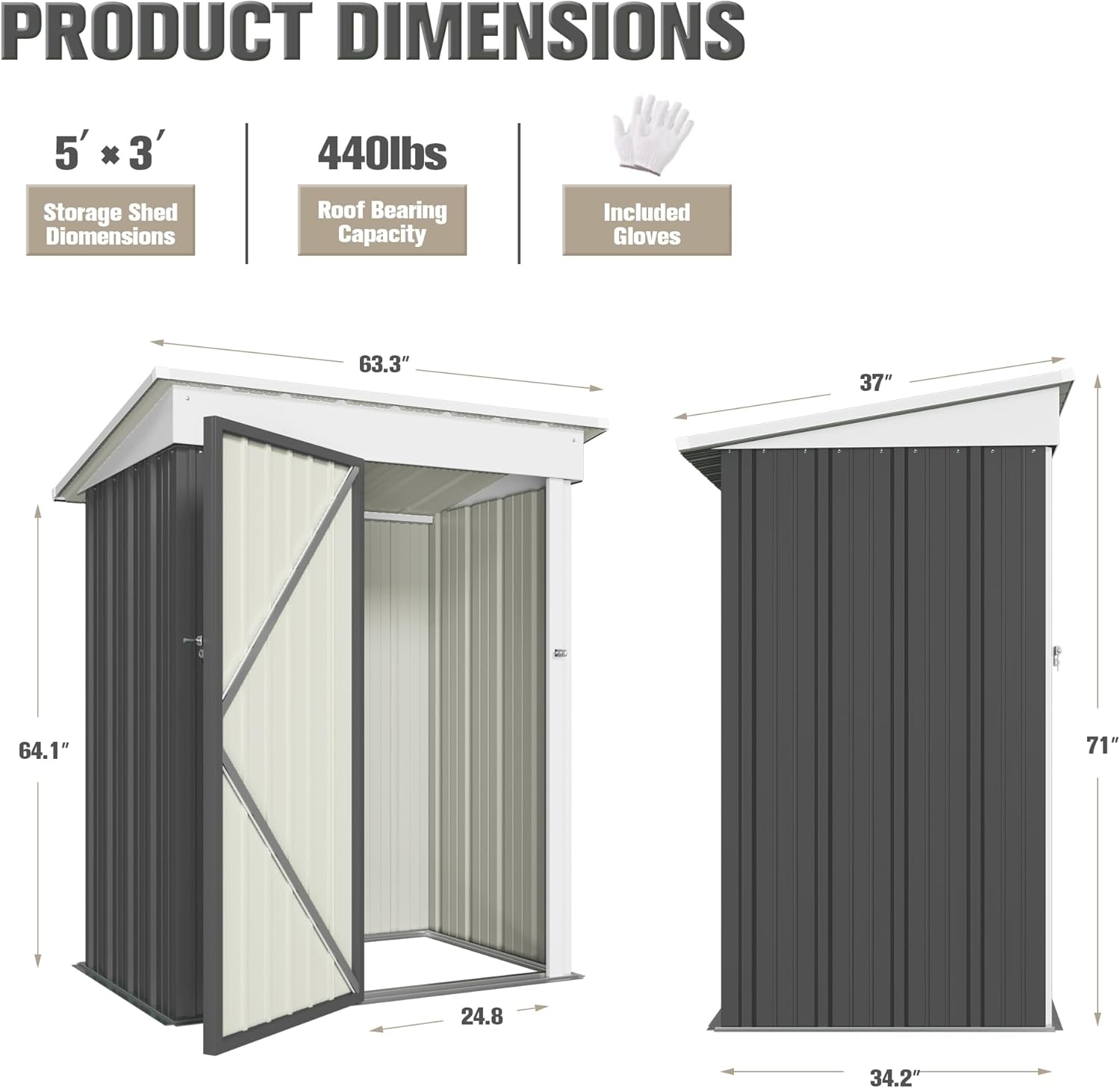 JUMMICO Metal Outdoor Storage Shed 5 x 3 FT Metal Shed with Lockable Door,Waterproof Garden Tool Shed Storage House for Backyard Patio Lawn,Grey