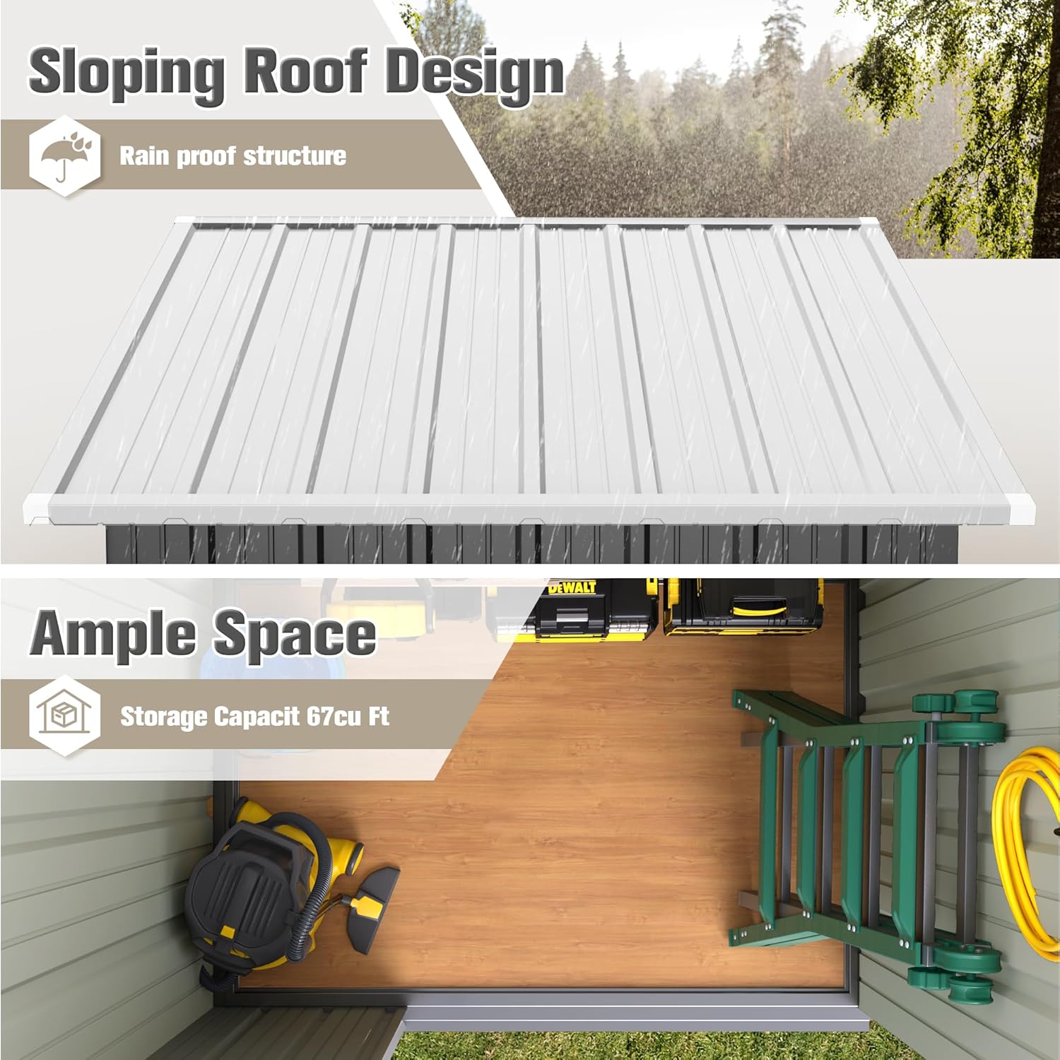 - Multifunctional storage shed: 5’*3’ Storage shed has 67cu.ft storage capacity can be used for multiple purposes, suitable for backyard, garden, courtyard, and other scenarios. It can be used to store tools, bicycles, garbage, and as a pet room.