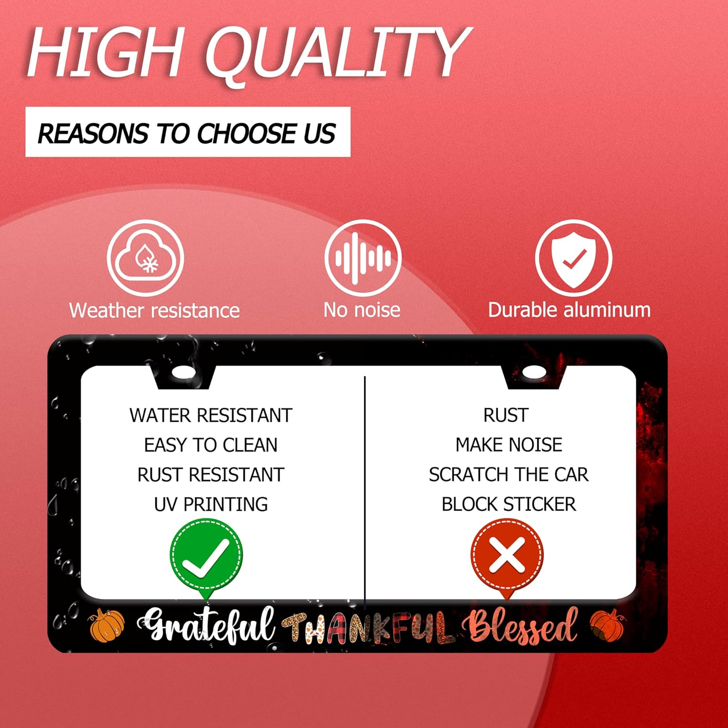 Grateful Thankful Blessed License Plate Frame Thanks Giving License Plate Frames Stainless Steel Accessories Cars Decor with 2 Holes and Screws Fits Standard US CA Vehicles Size 12.2 x 6 Inches