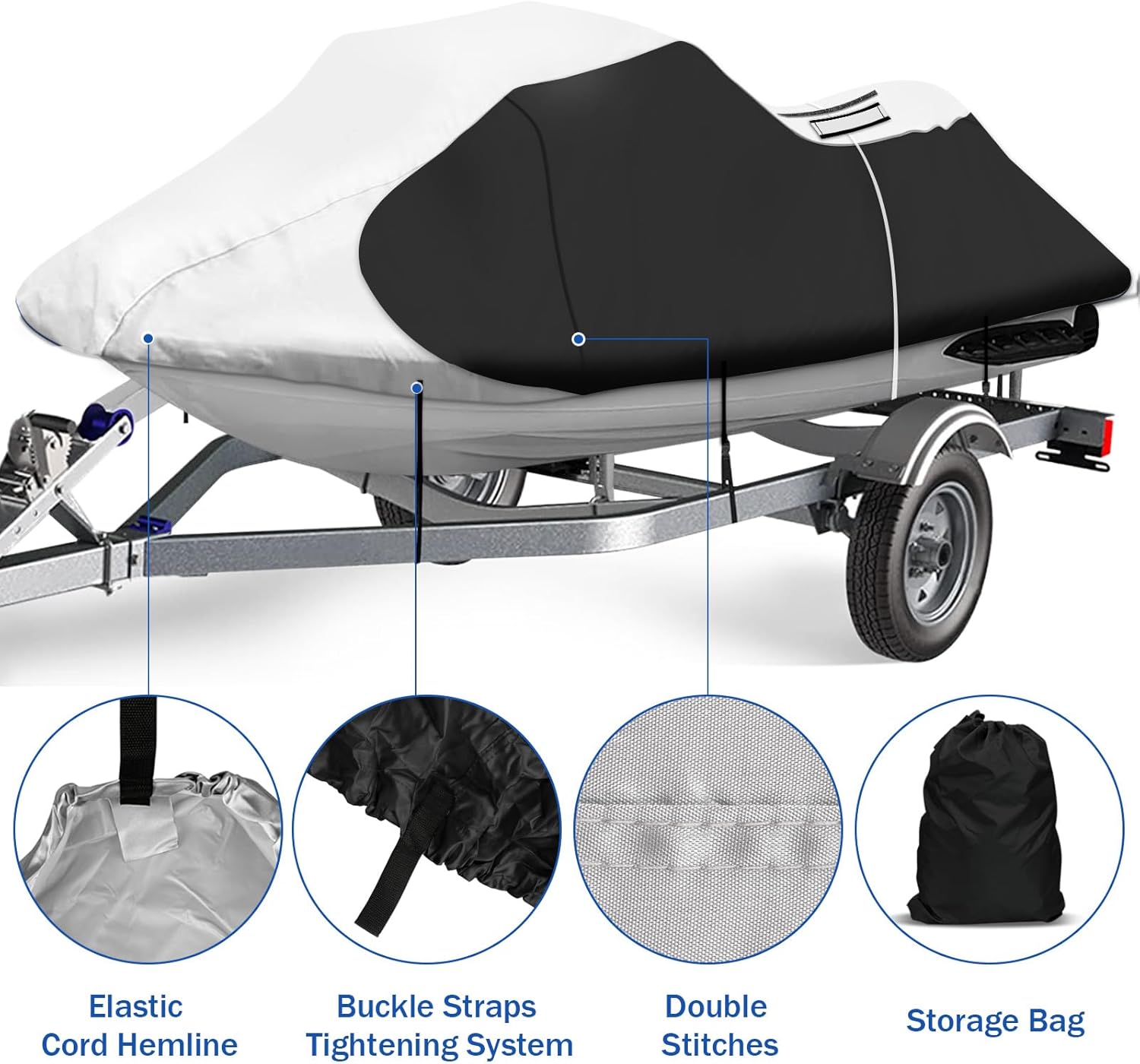 - Durable Construction: Constructed from lightweight yet strong marine grade polyester. Waterproof, tear-resistant, and UV-resistant. Features reinforced panels at the bow and stern for superior all-weather protection. Reflective polyester makes it easy to clean, ensuring your jet ski stays in top condition