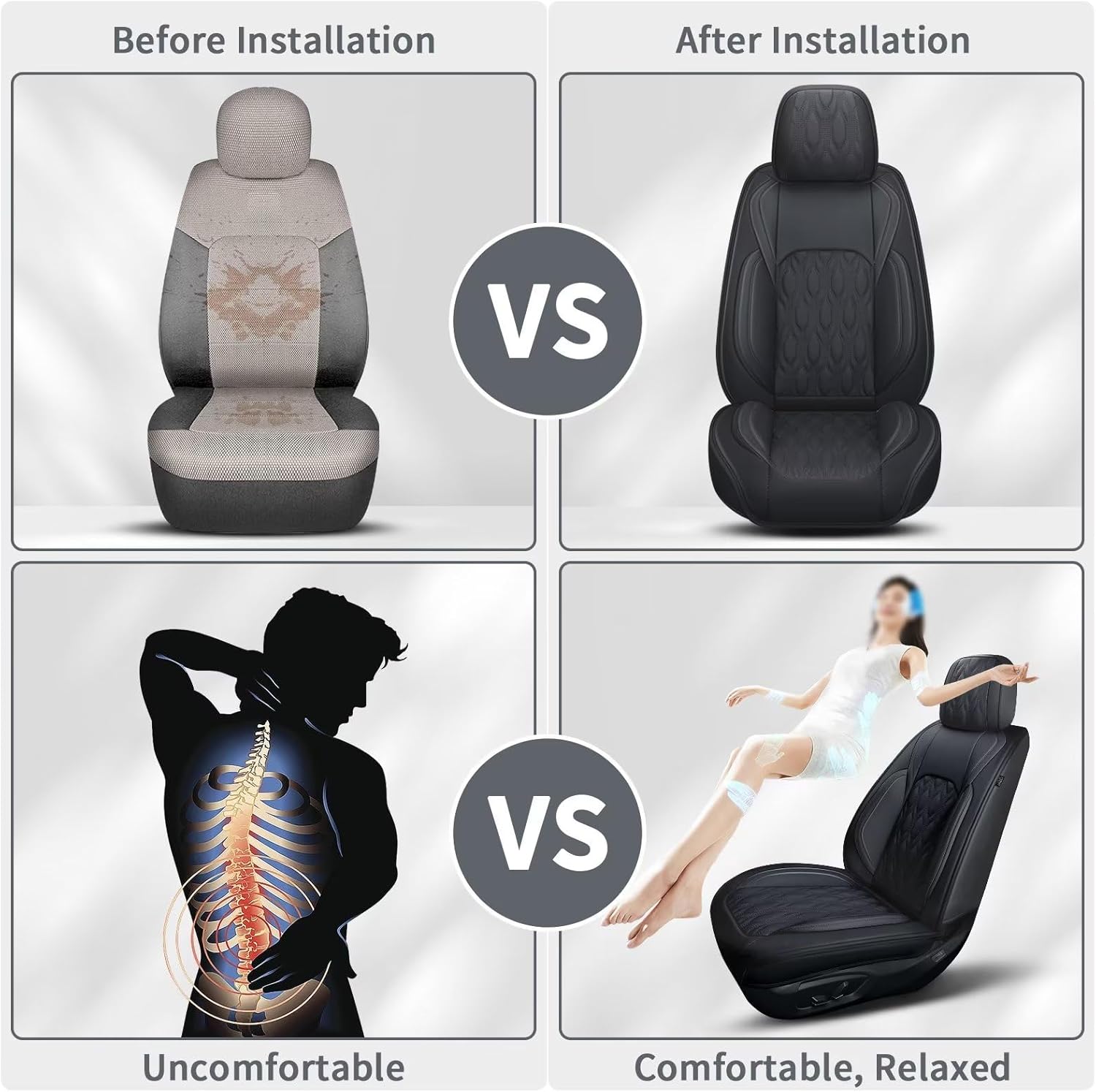 - 🚗🔥【Easy Installation and Warranty】: Each car seat protectors package includes 2pcs front seats covers, paper instruction and a small bag of accessories for installtion.If you encounter any problems, please let me know via Amazon message directly and we will try our best to solve any problems for you.