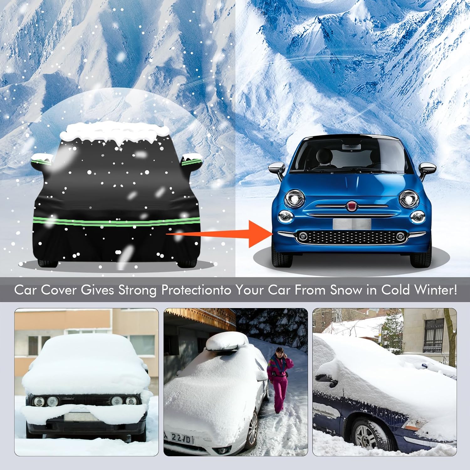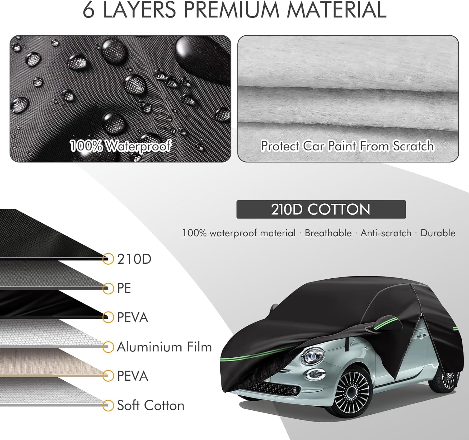 Replace for 2007-2023 Fiat 500/500C Car Cover 210D Outdoor Waterproof UV Snow Rain Protection, with Cotton Layer, Zipper Door, Reflective Strip, Storage Bag, for Abarth Turbo Sport Lounge Pop