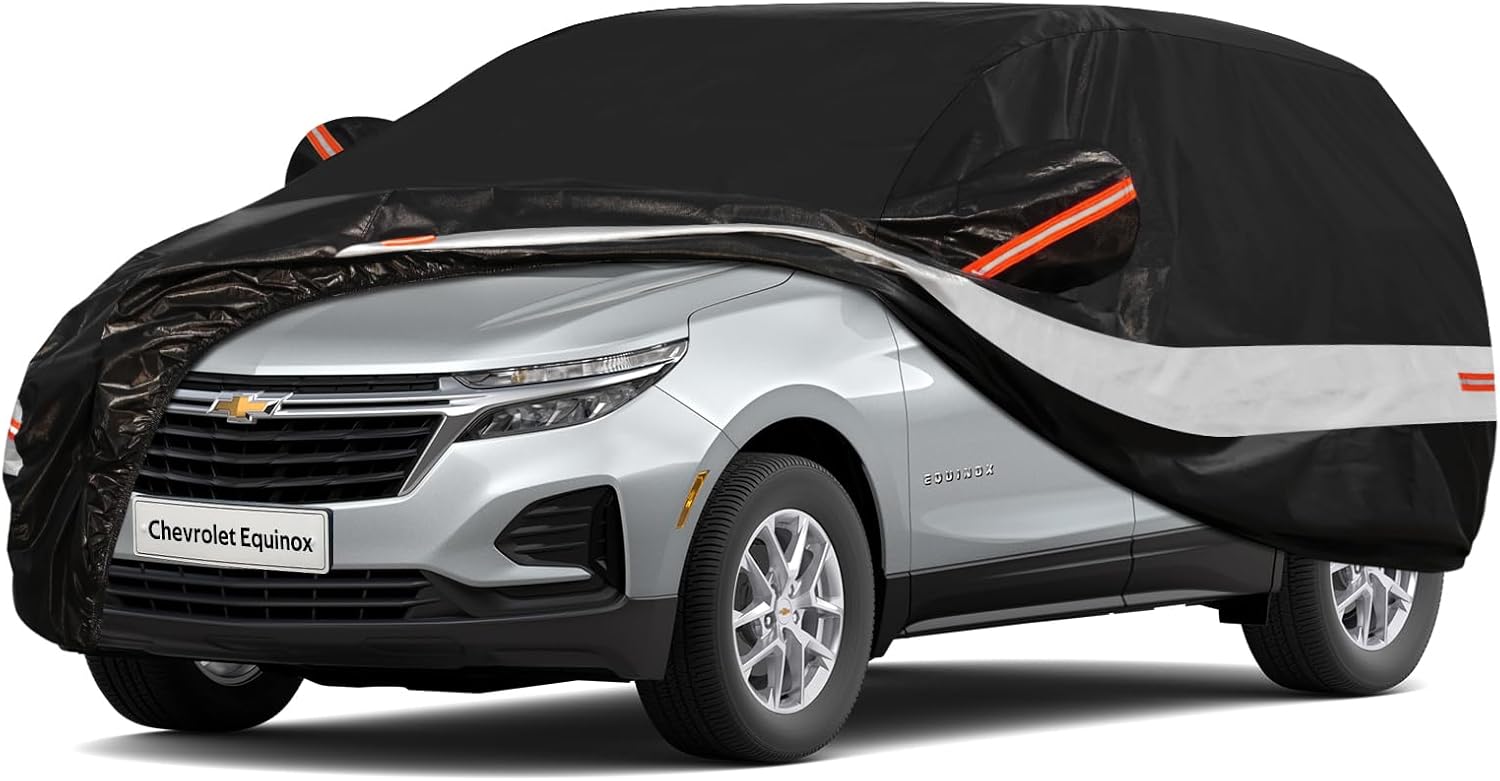 10 Layers SUV Car Cover Custom Fit for Chevrolet Chevy Equinox (2005-2024) Waterproof All Weather for Automobiles, Outdoor Full Cover Sun UV Rain Protection with Cotton.Black