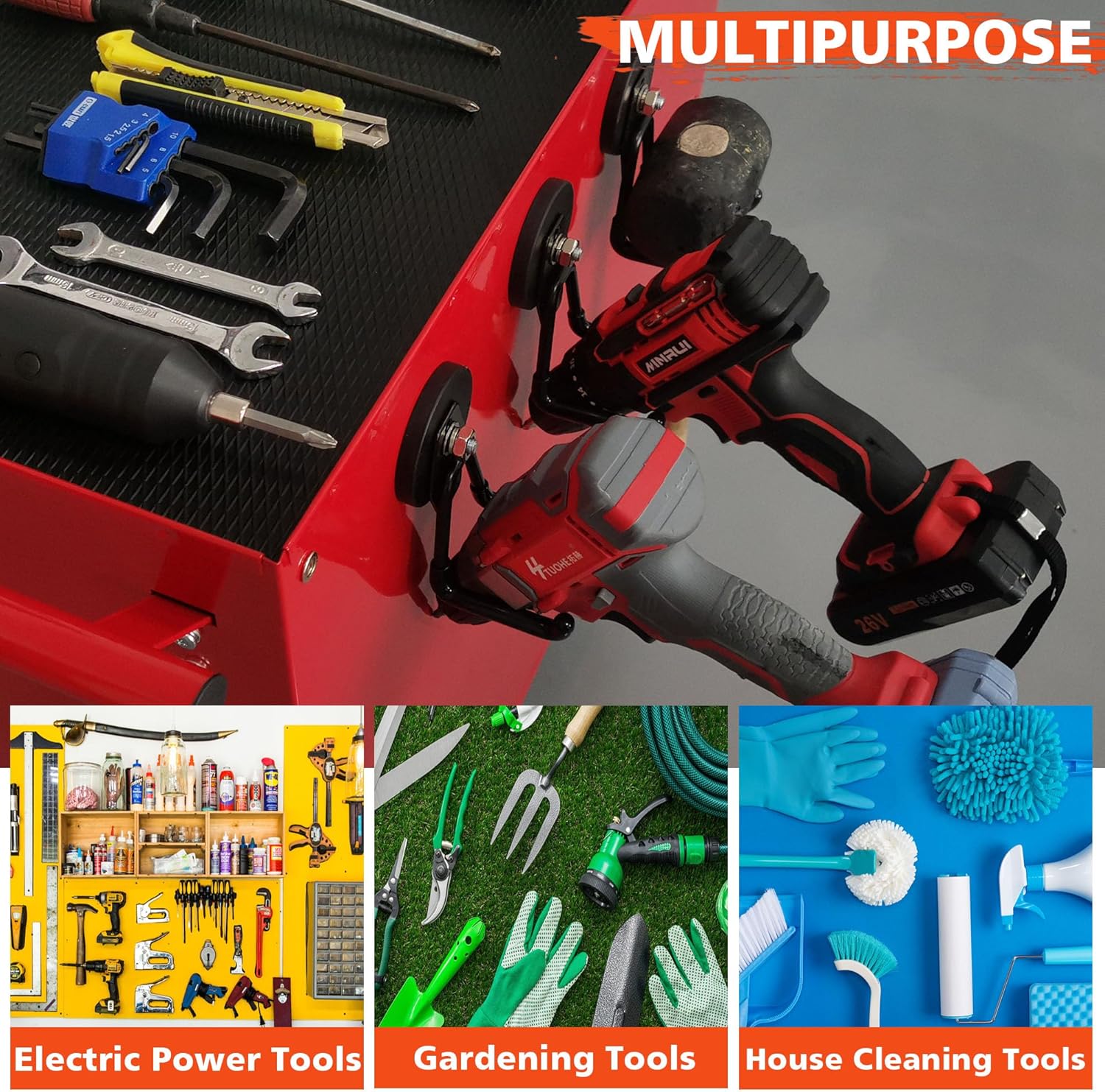 - [Multiuse Neodyium Magnet Hook]: strong storage hook can easily support the weight and can hang most items. Applicable to scenes such as kitchens, warehouses, offices, etc. Can storage various tools, such as hoses, rake, broom, mop and other garden tools