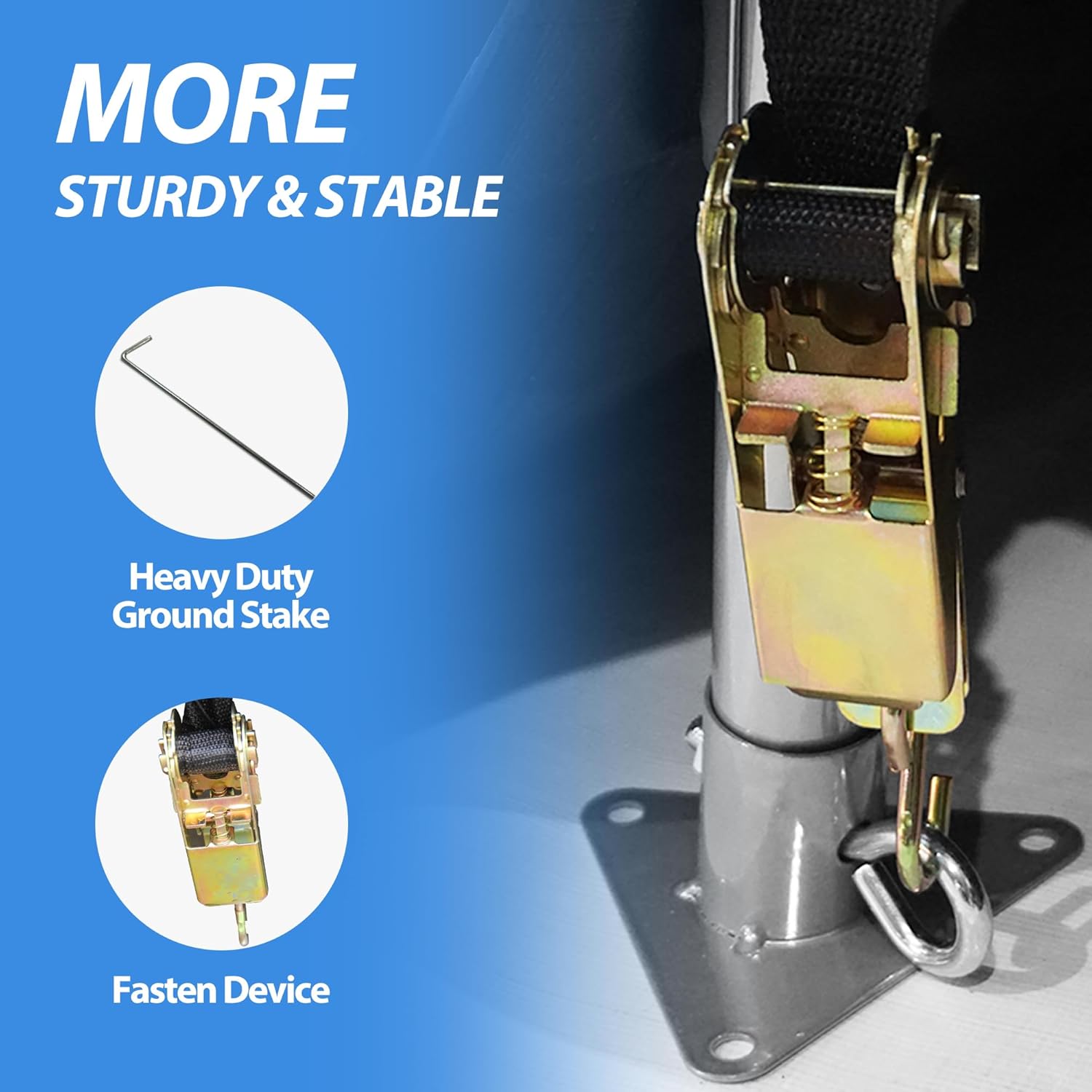 - ❗For long term use and safety, please make sure to use rope, ground anchors for stability.If you want to place it on the grass for a long time, you need to pour cement around the legs and fix it with expansion screws to ensure stability. (Expansion screws need to be purchased by yourself. )