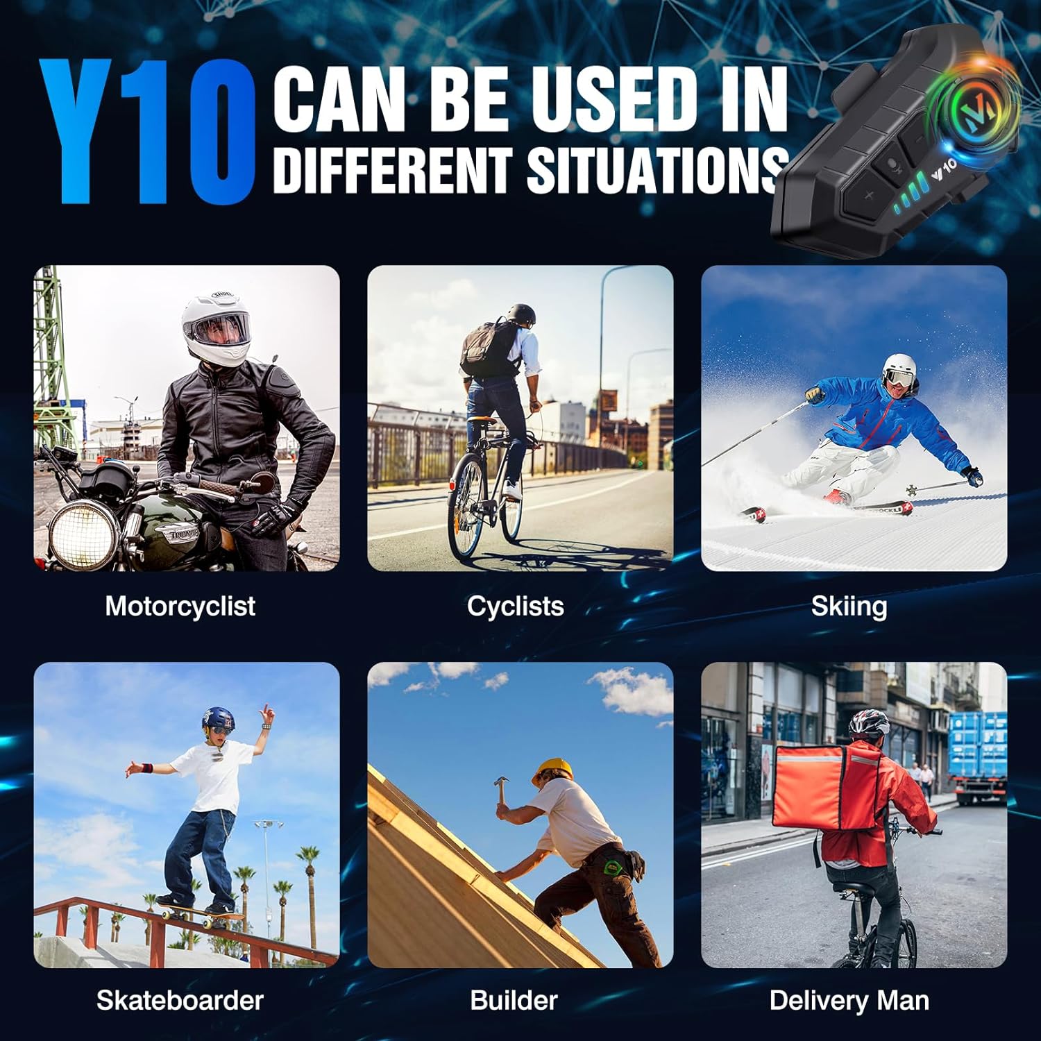 - 【IPX6 Waterproof and Playback Control】The New Y10 Motorcycle Helmet Speakers is IPX6 waterproof help you handle all weather conditions, such as dust, rain, storm, snow and low temperature of -20°F. helmet headset easily button control to play/ pause music, short press plus or minus key for previous/next song, long press and adjust volume, short press voice key to wake up siri.