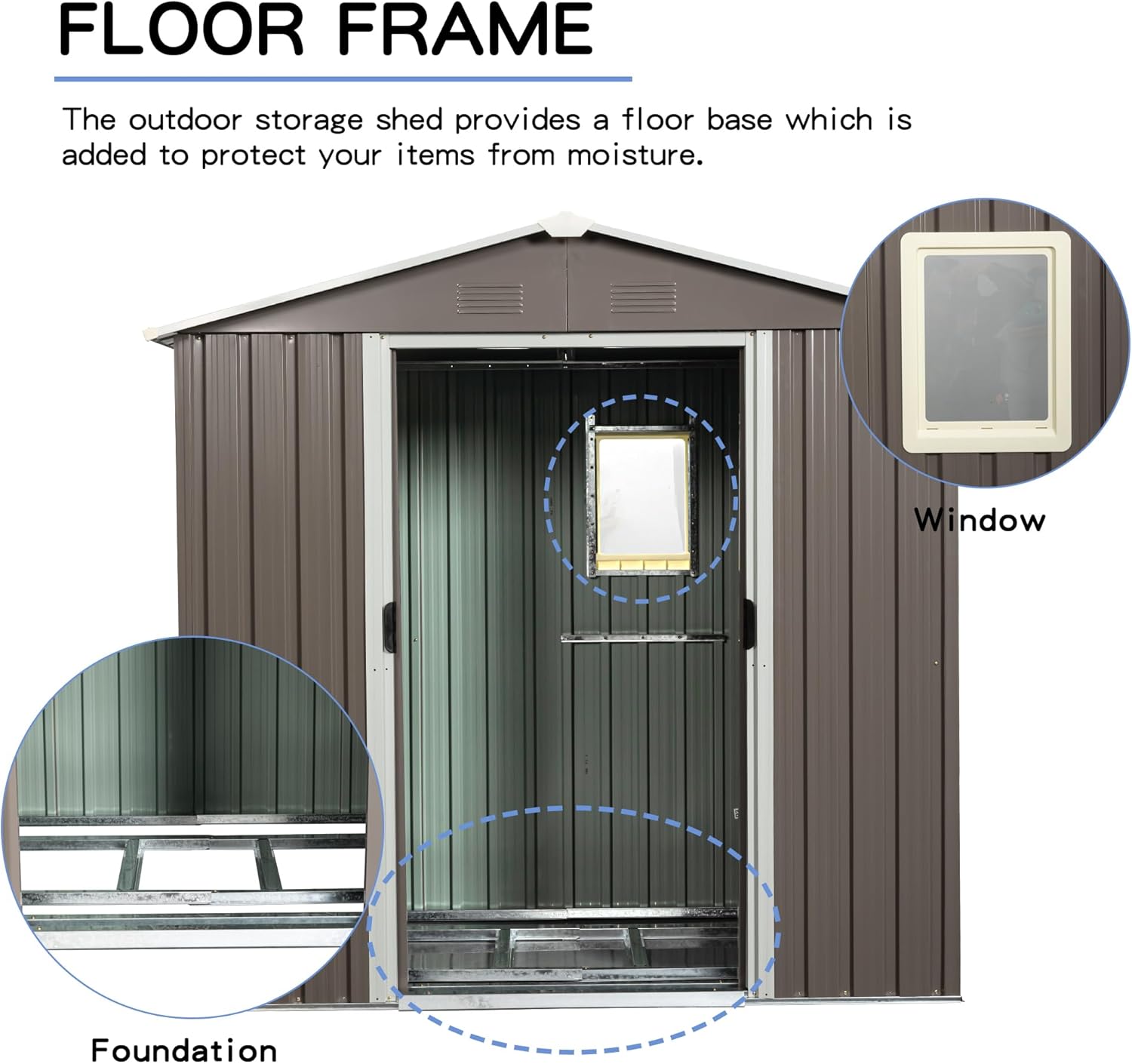 - [8ft x 4ft Sheds & Outdoor Storage]: The high-quality galvanized steel Sheds with Storage Window, making the outdoor storage cabinet strong and durable. This metal garden shed is easy to store snow blowers, lawn mowers, mixers, bicycles.