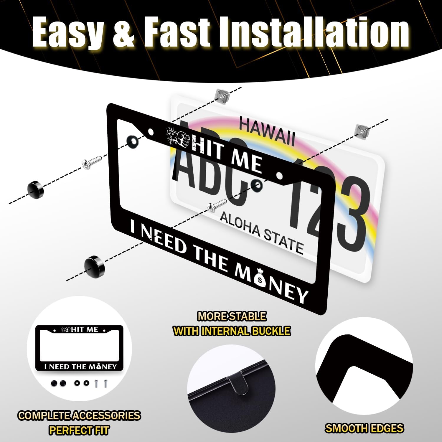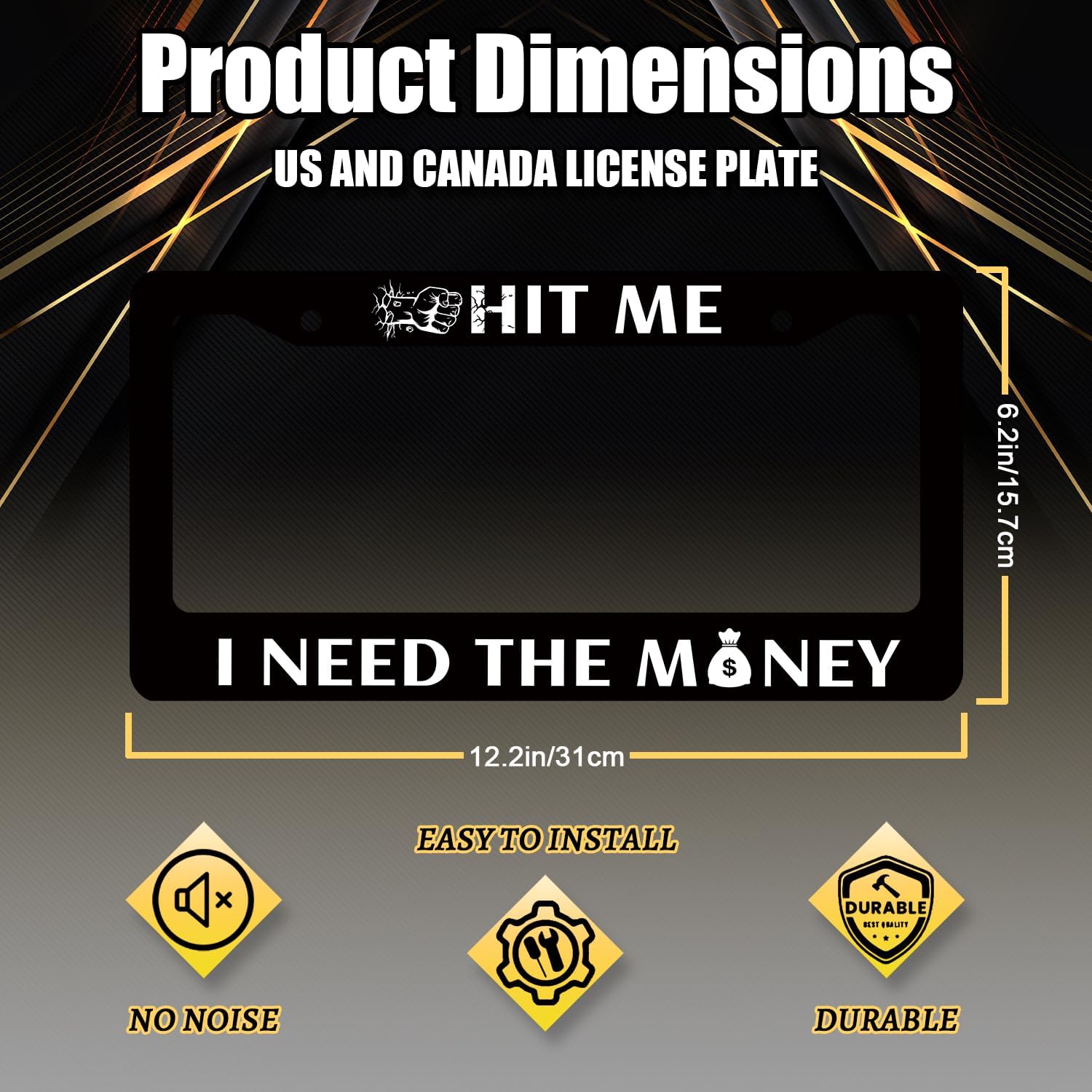 Funny License Plate Frame Hit Me I Need The Money License Plate Holder Stainless Steel License Plate Car Accessory Personalise License Plate Decoration Size 12.2" x 6.2" with Screws