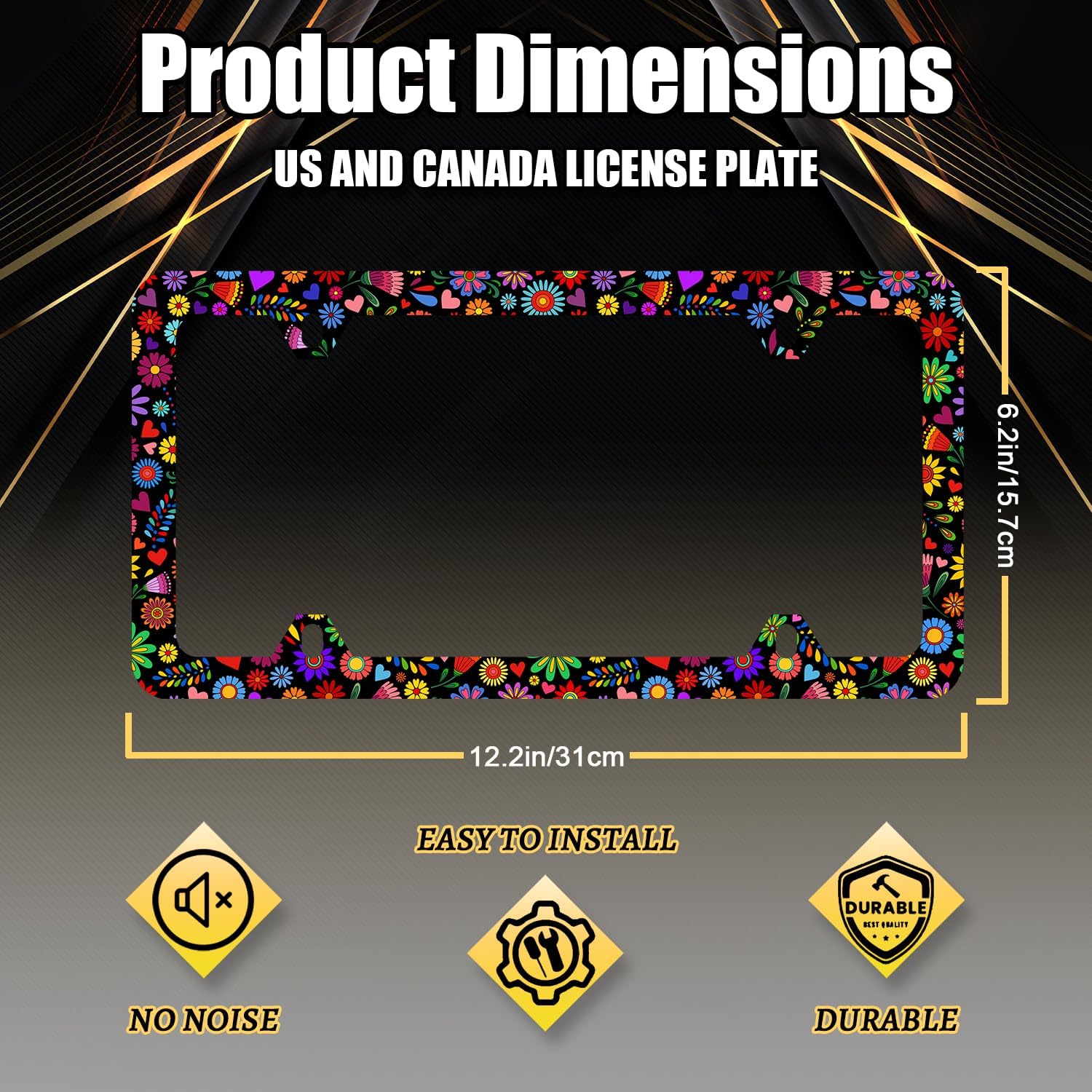 - The size of the license plate frame is: 12.3" x 6.3" , it fits all standard size US and Canada vehicle license plates.the stylish design frame fits ly on your car license plate.