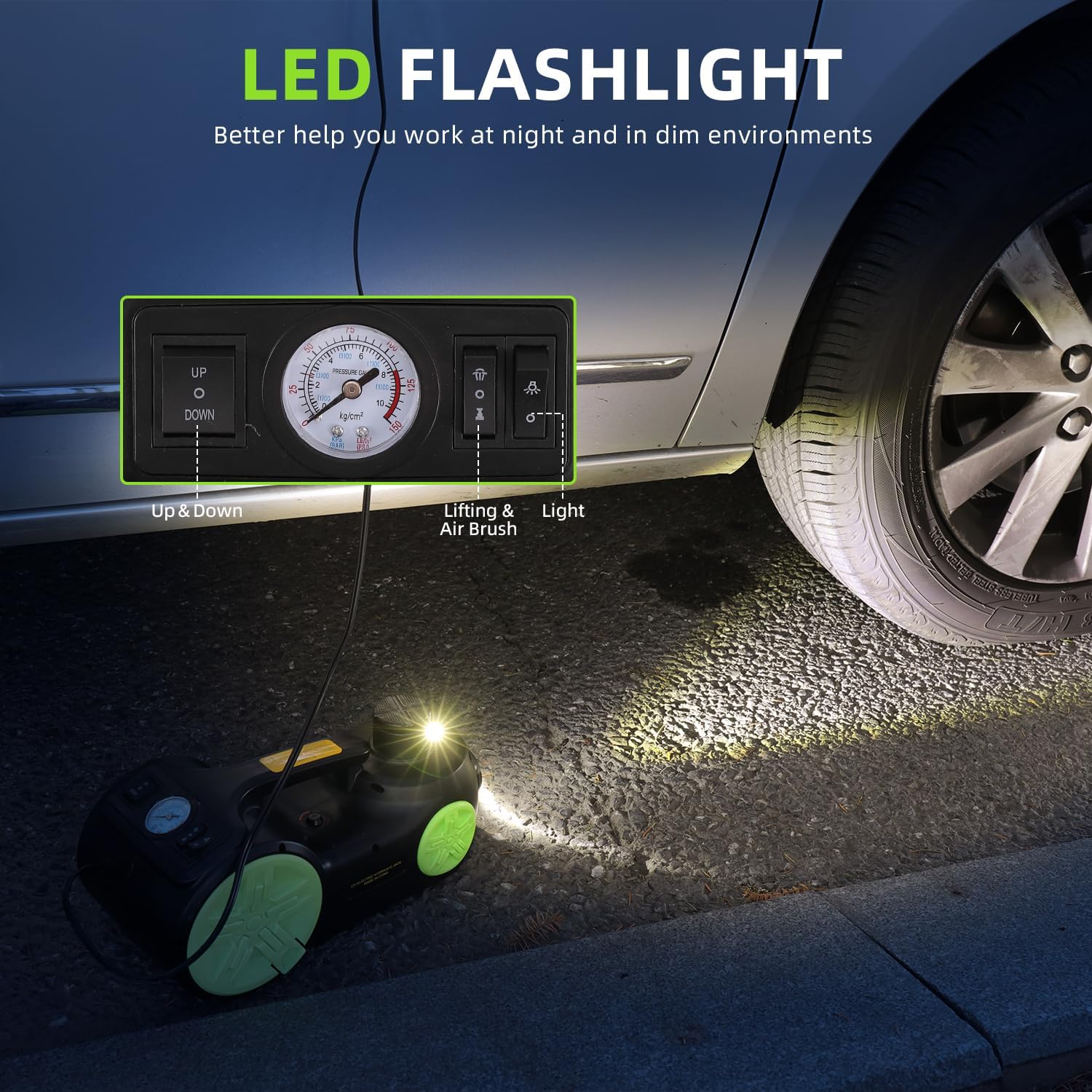- Multi-Scene Application:The LED light is just icing on the cake! which helps find your lifting area and illuminate your working environment ,achieveing easy tire change in dark and rainy night