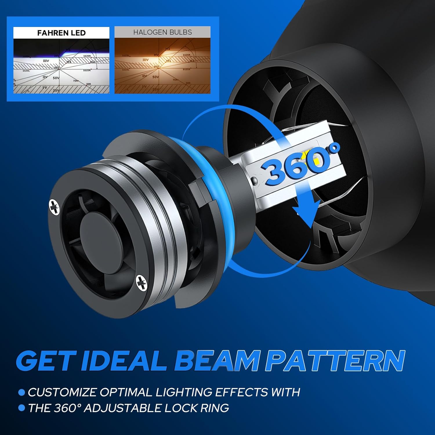 FAHREN 9007 LED Bulb, 33000LM Super Bright, 6500K Cool White, HB5 Driving Bulbs high/low beam with Fan, 60000+ Ultra-long Life, IP68 Waterproof, Plug and Play, Pack of 2