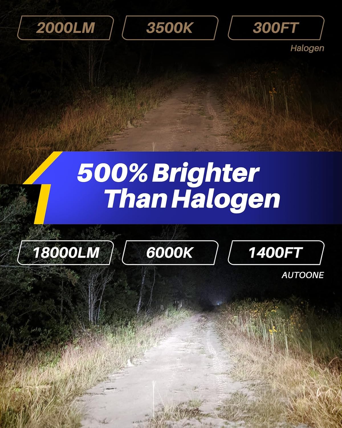 - 500% Brightness Improved - No exaggerated brightness like others which claimed 900% 800%. AUTOONE H4 HB2 LED light bulbs are equipped with superior ZES chips(Lights won't dim over time) And it provides excellent 360° illumination and 18,000 LM output with no dark spots or shadow light