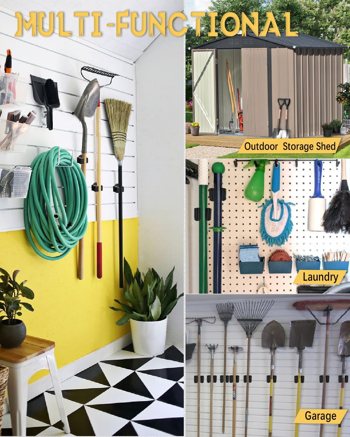- Wide application: magnetic broom and mop holder for fridge allows you hold various household objects; like broom; mop, dustpan; garden tools; shovels; etc.; can be used in the laundry; kitchen; bathroom; utility room; garage; shed; garden etc