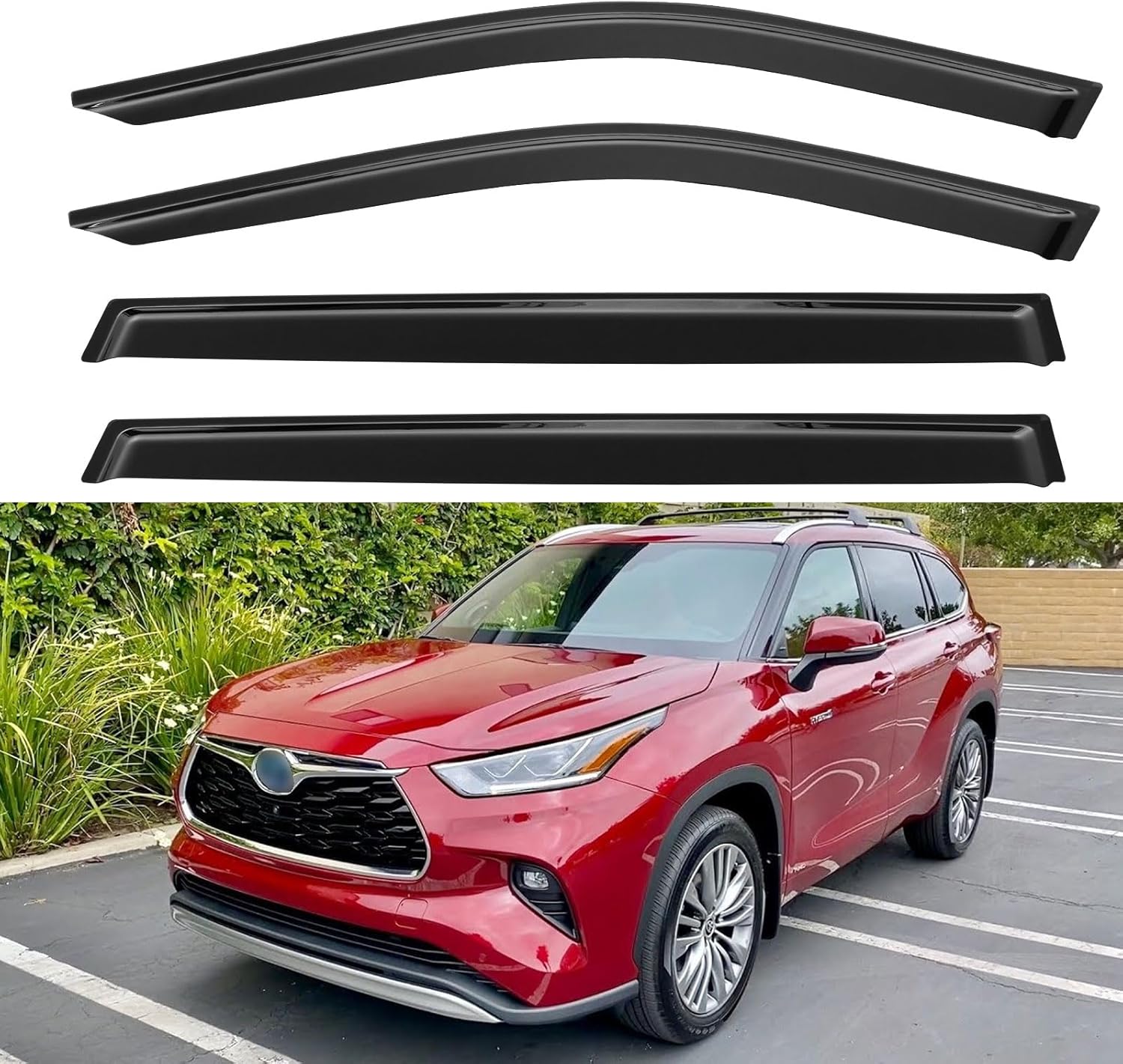 - ăPerfect FităYQAUTEC out-channel Window Visors Rain Guards Shield for 2020 2021 2022 2023 2024 2025 20 21 22 23 24 25 Toyota Highlander, Side Window Vent Wind Deflectors Visors Shades.