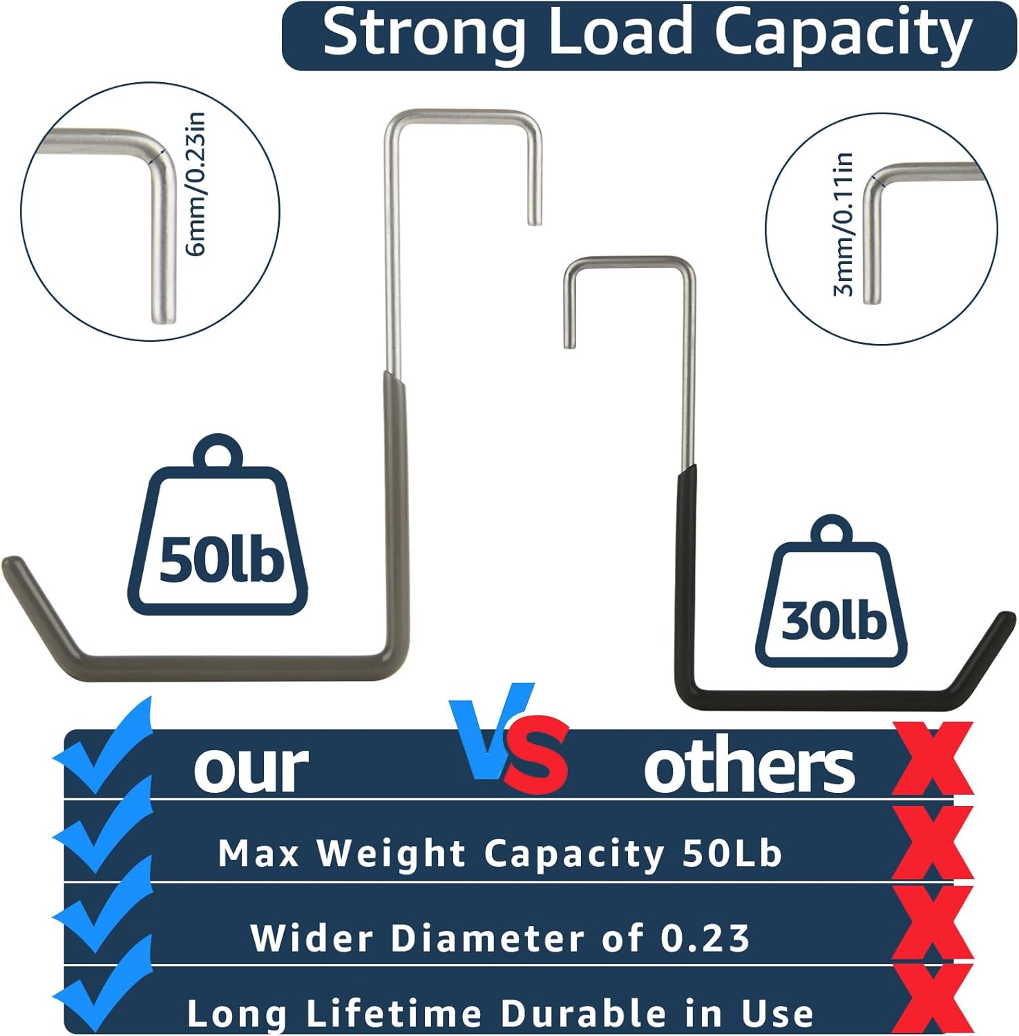 - 【Strong Load Capacity】The maximum load-bearing capacity of the large hooks for hanging is about 50 pounds. Each rafter hooks for hanging has a vinyl coating that efficiently prevent hanging items from slippage and scratches