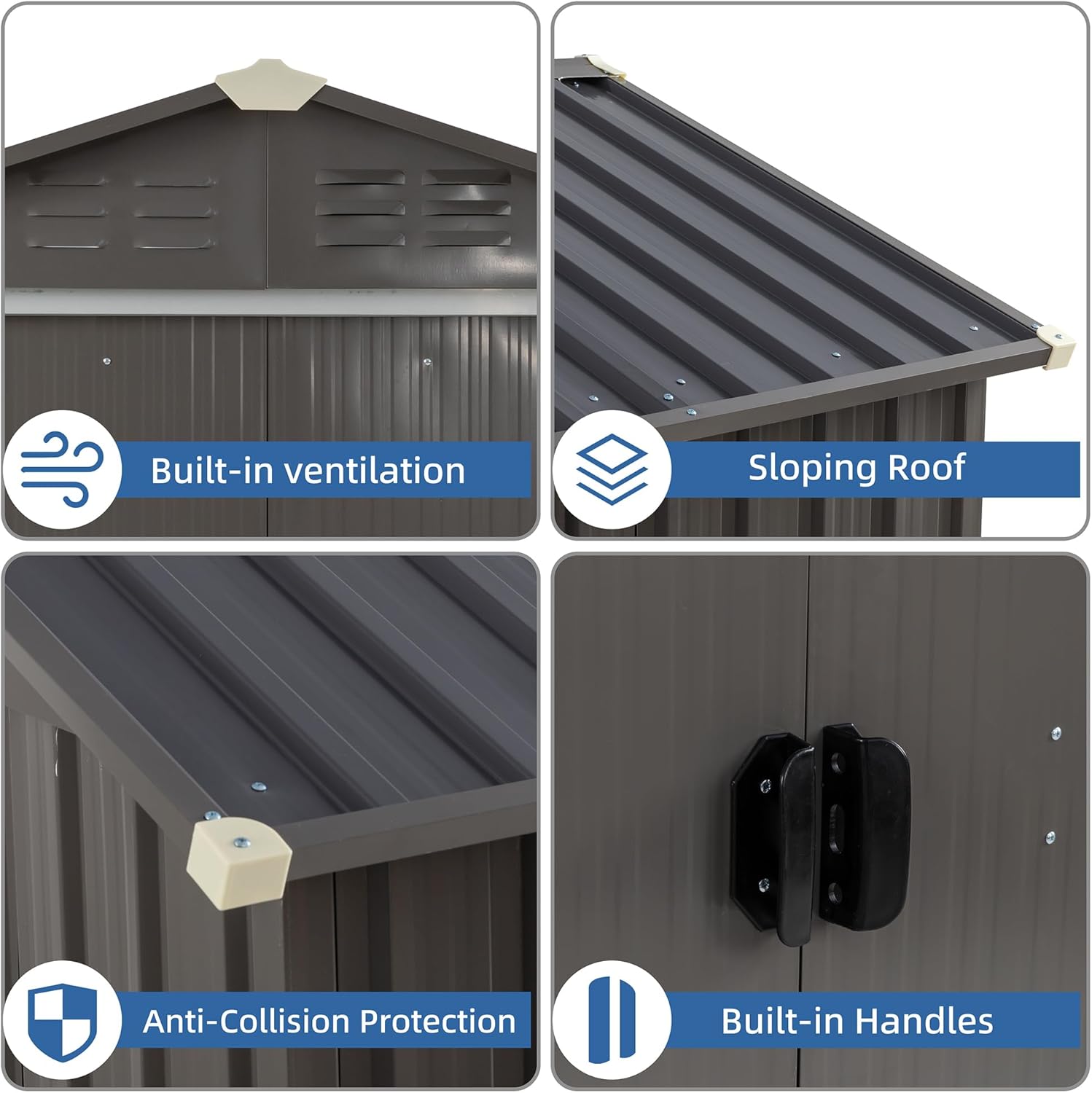 - Ventilation System: Equipped with a ventilation system, this garden tool shed promotes air circulation, preventing moisture buildup and maintaining a dry environment for your tools.