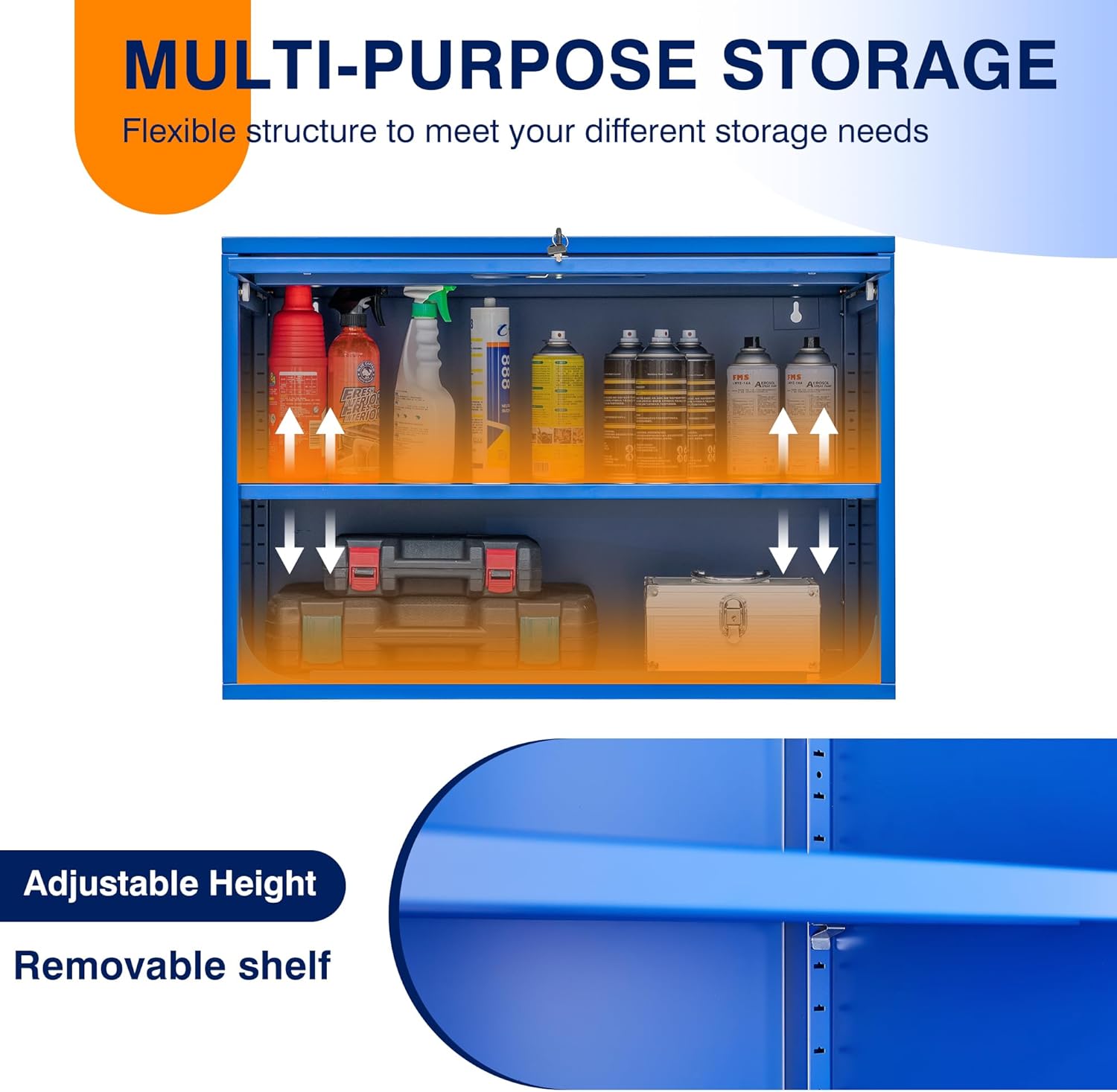 Yizosh Metal Garage Wall Cabinet with Doors and Shelves, Wall Mounted Metal Storage Cabinet, Floating Garage Tool Cabinet for Garage, Basement, Kitchen, Warehouse (Blue, 21.6" H)