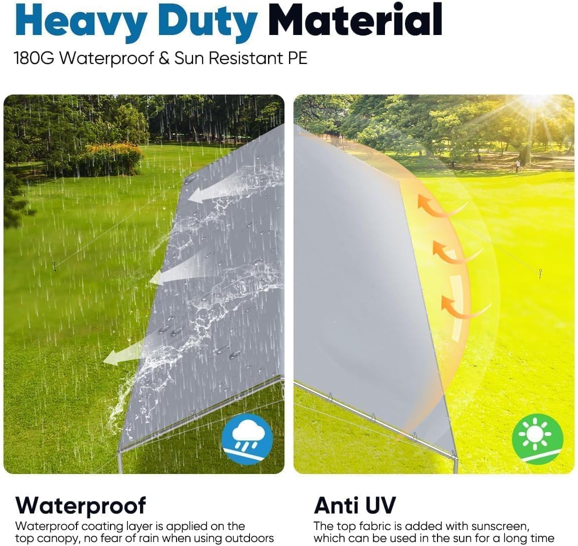 - 【Upgraded Galvanized Tube】:Heavy Duty 1-1/2 inch diameter Rust Resistant galvanised steel framework and metal corner joint Improves overall windproof performance and makes our carport tent more durable.