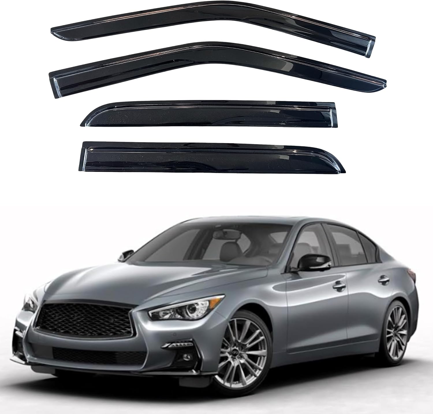 - 【Perfect Fit】KPY window visors rain guards vent deflectors compatible with Infiniti Q50 2014 2015 2016 2017 2018 2019 2020 2021 2022 (Mugen Style)
