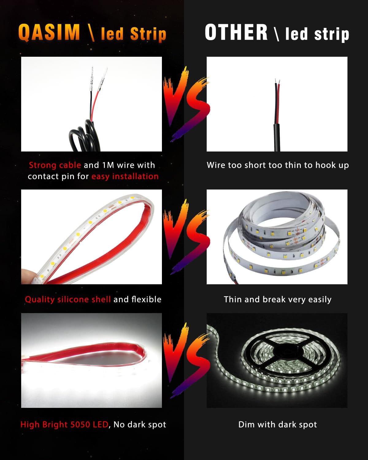 - 【Thickened Wires and Upgraded Pin Connection】This 12V golf cart light strips use thickened 24awg wires and 100cm length lead wire, which makes it stronger and unbreakable, No need to worry about damage during installation; Upgraded Pin Connection is safer and easier for connection: red wire connect to positive (+), black wire connect to negative (-).