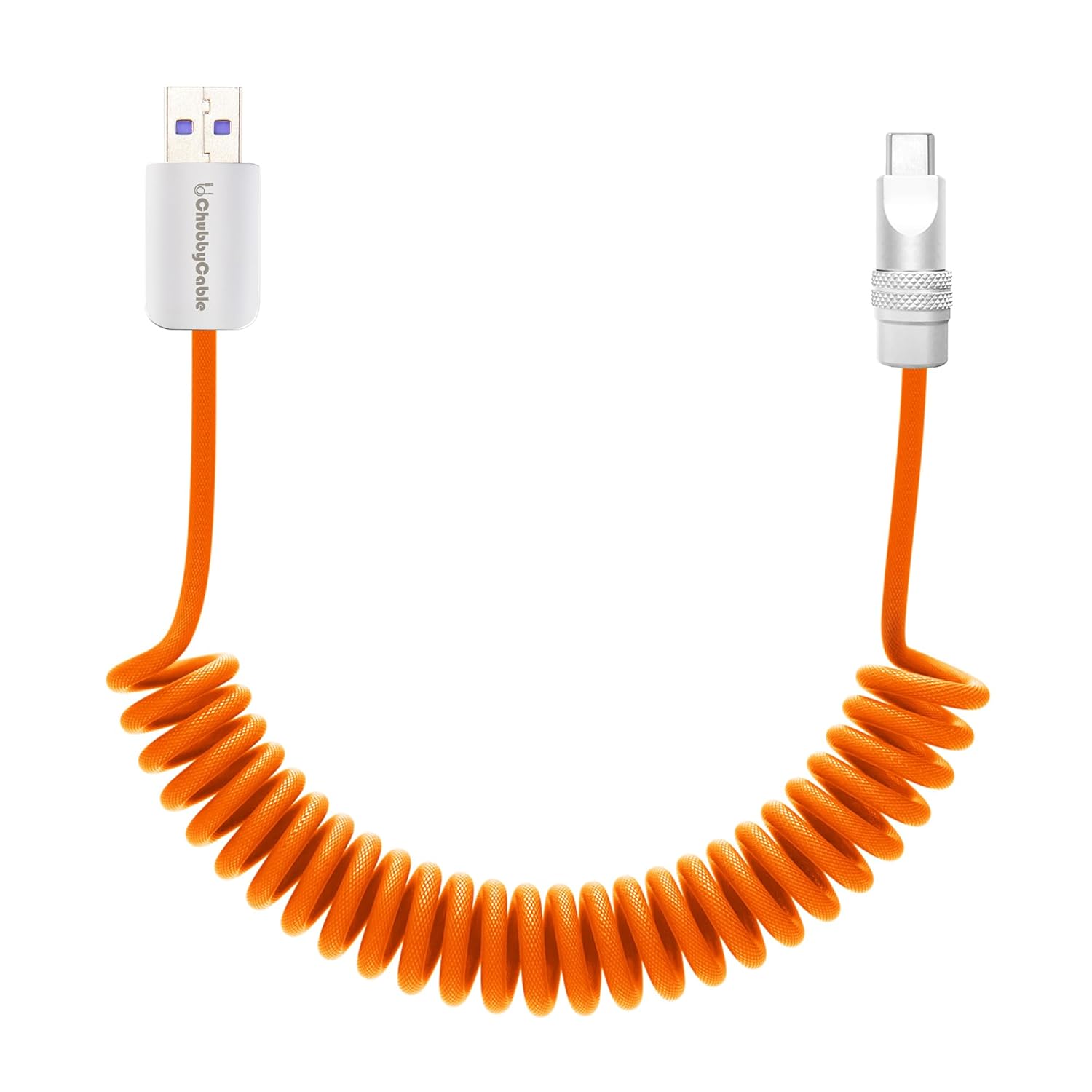 chubbycable Curly Chubby - Retractable Fast Charging Cable 240W Coiled Charger Cord for Car Durable USB-C Cable for Phones, Tablets and More, Orange, USB-A to Type-C, 1.3FT-2.3FT