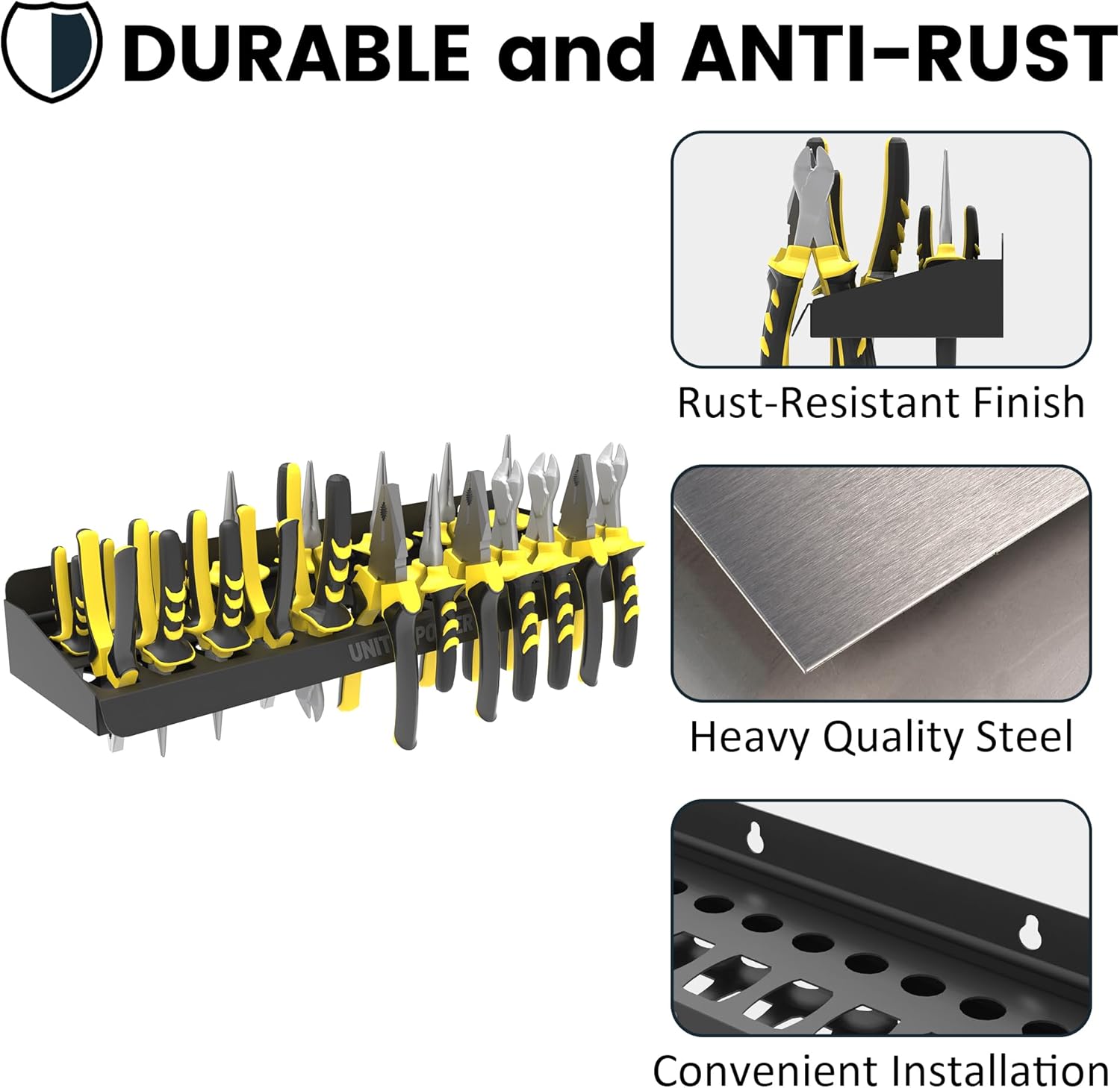 - Durable Material: The pliers Storage Organizer Made of heavy metal with powder coated finish for lasting durability, double-layer design to better fixing tools