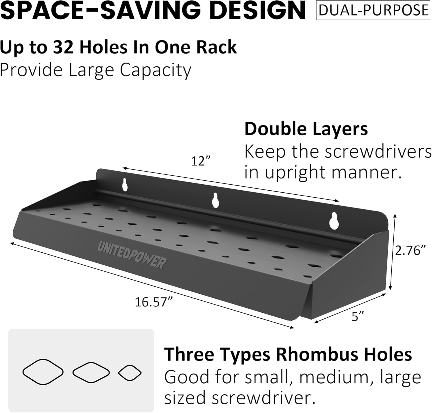 UNITEDPOWER Screwdriver Holder, Wall Mount Storage Rack Organizer for Workshop, Shed, Garage, Home, Stores up to 32 Screwdrivers or Small Tools
